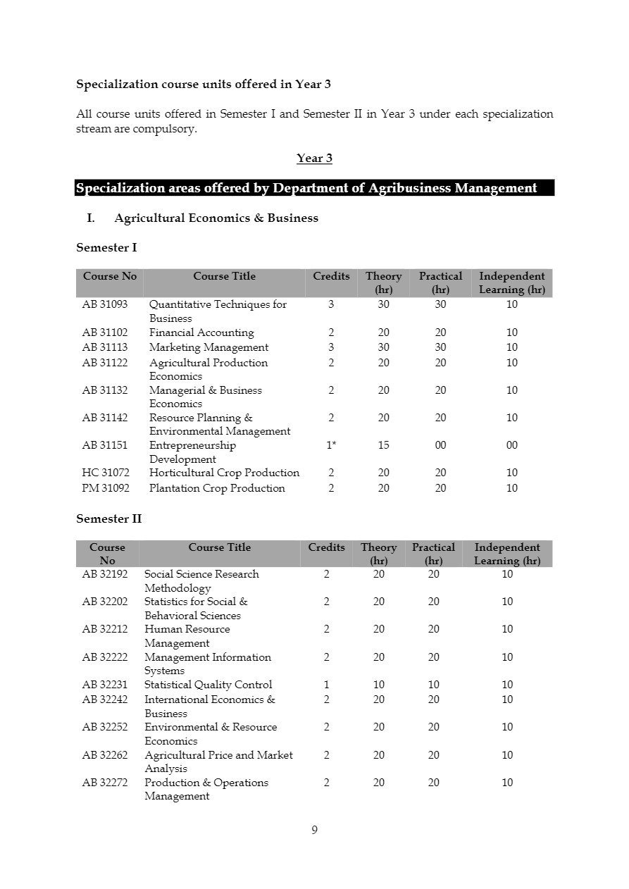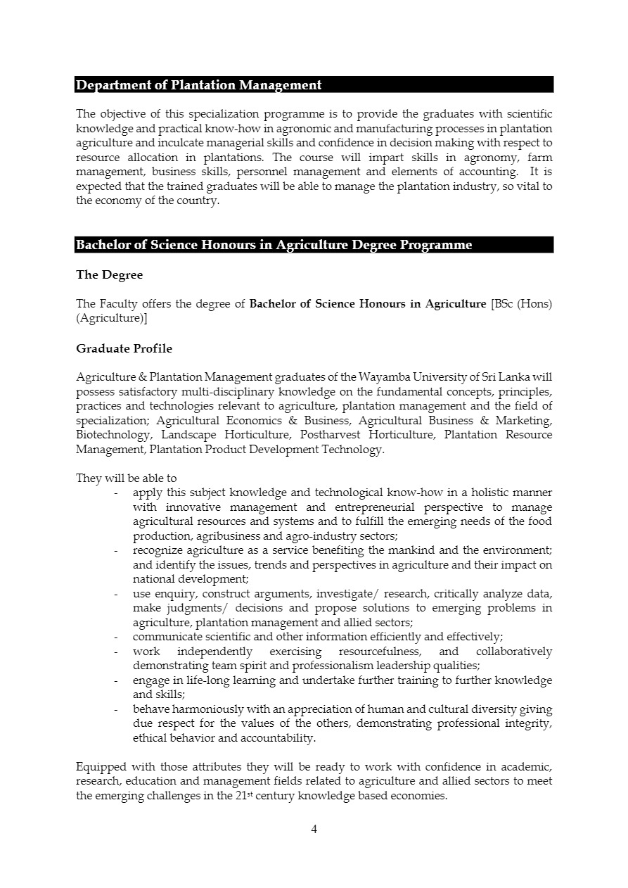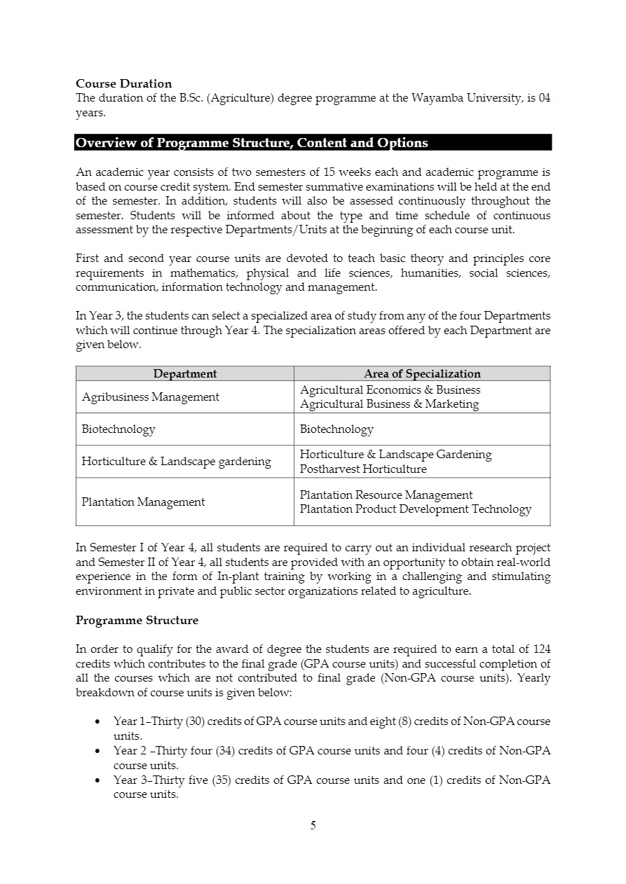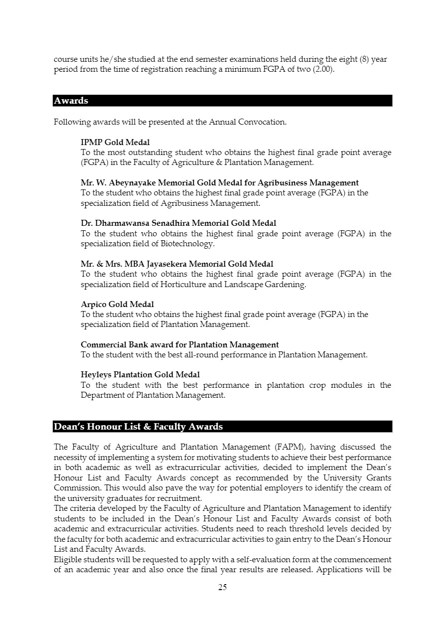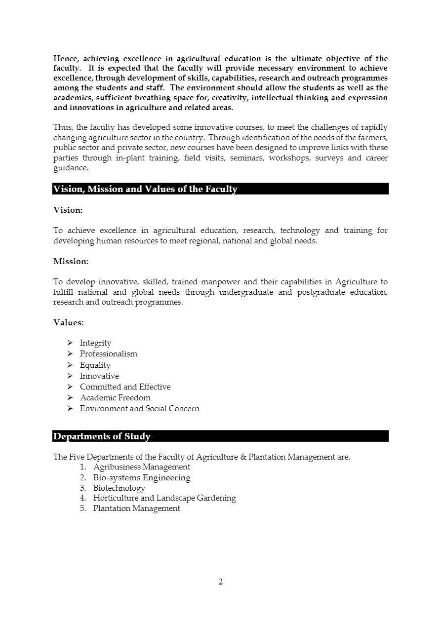 Faculty of Agriculture & Plantation Management –B.Sc. Agriculture: Student Handbook