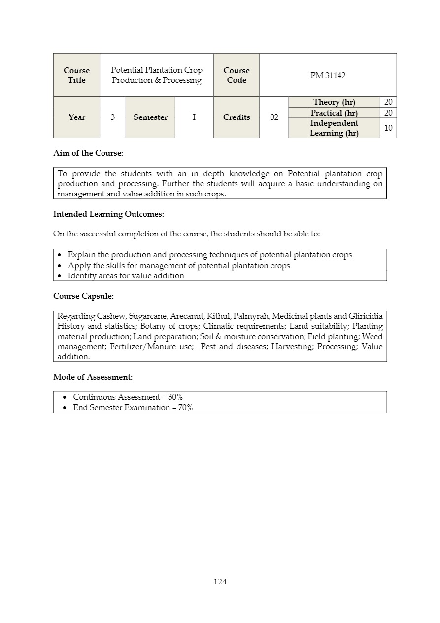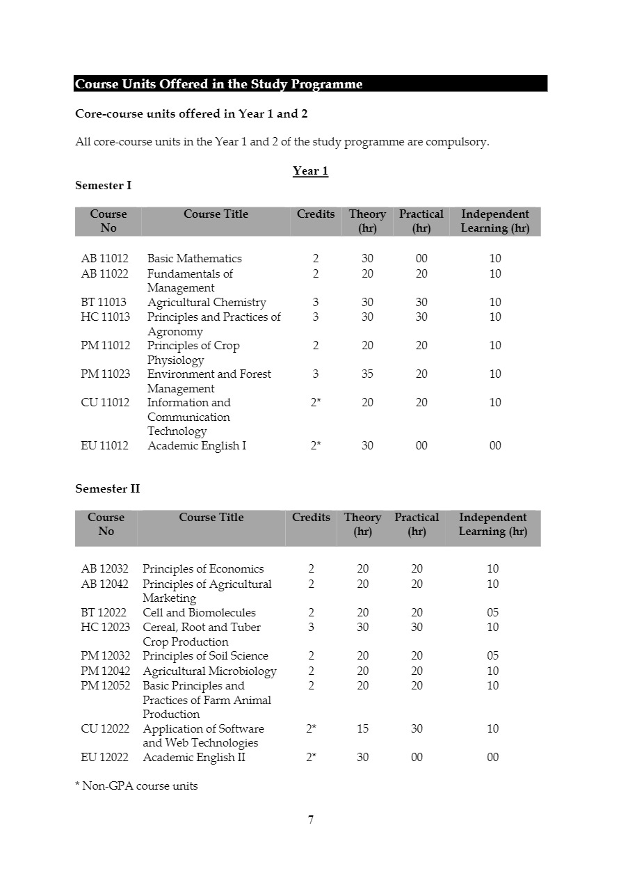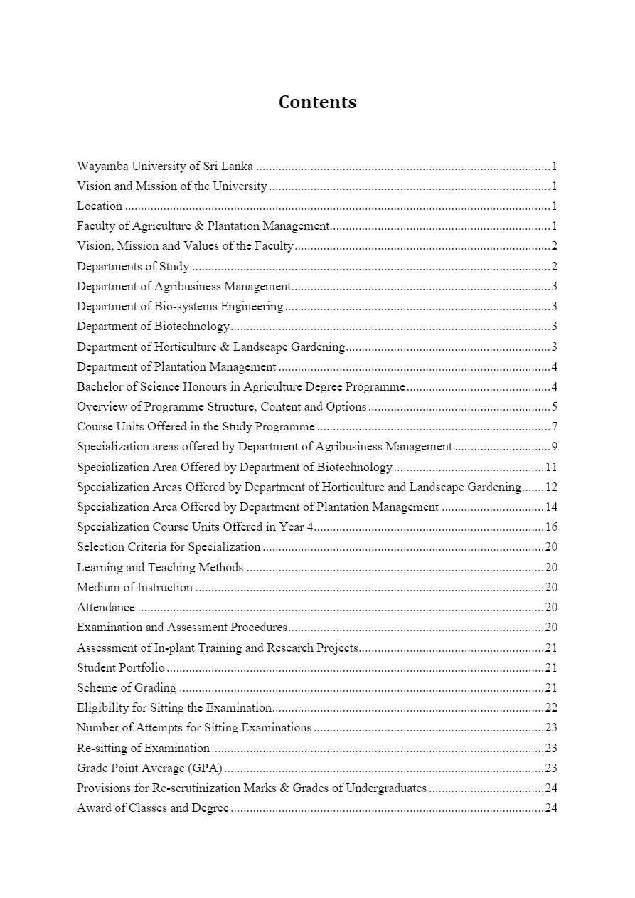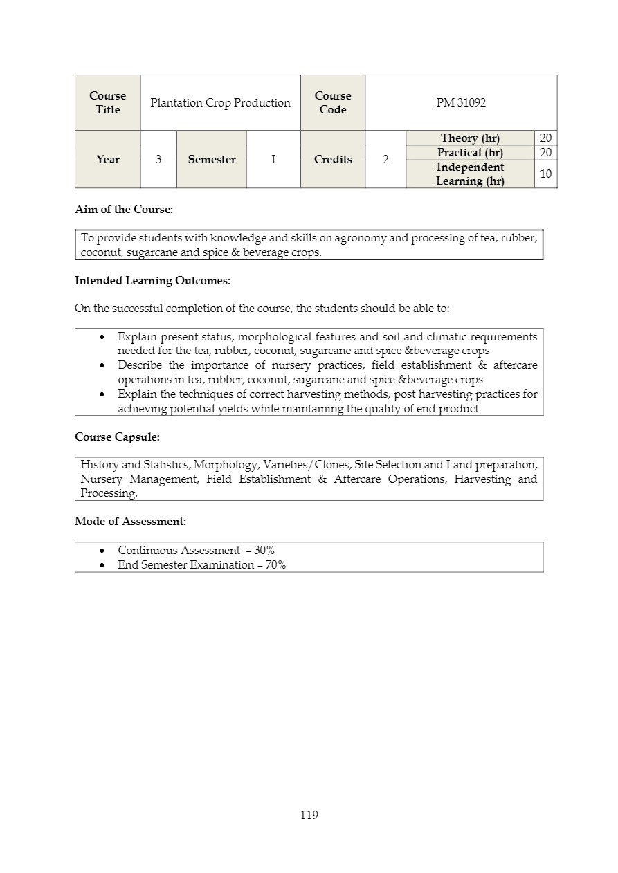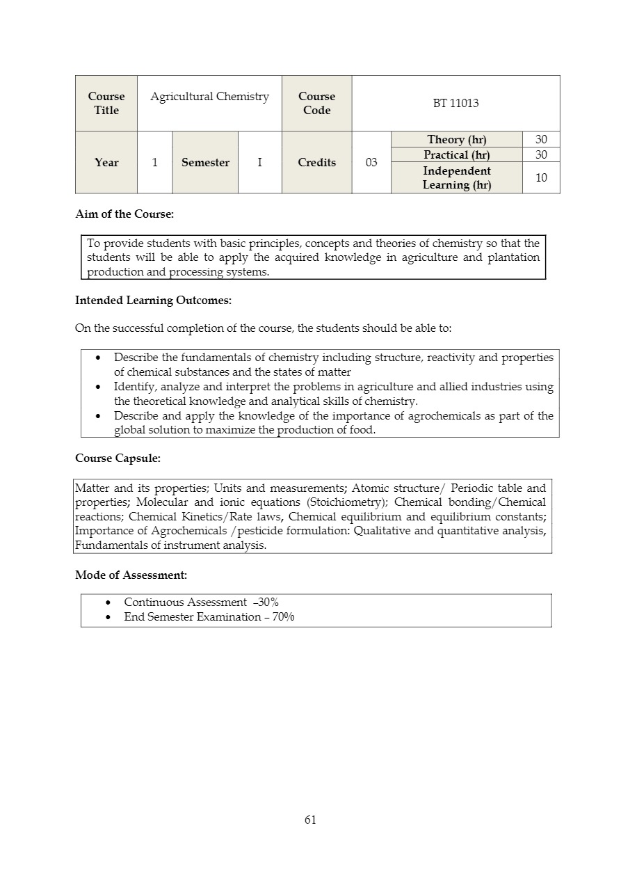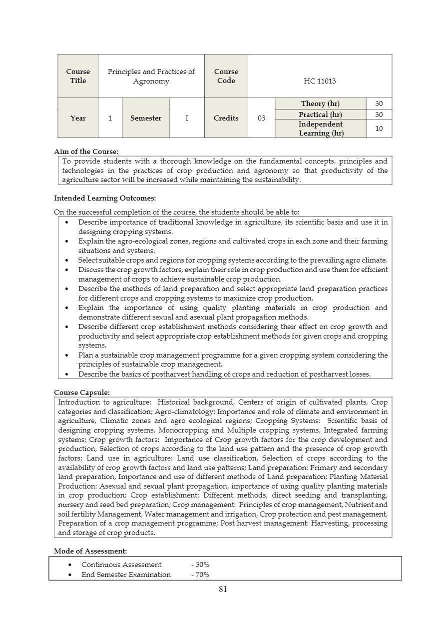 Faculty of Agriculture & Plantation Management –B.Sc. Agriculture: Student Handbook