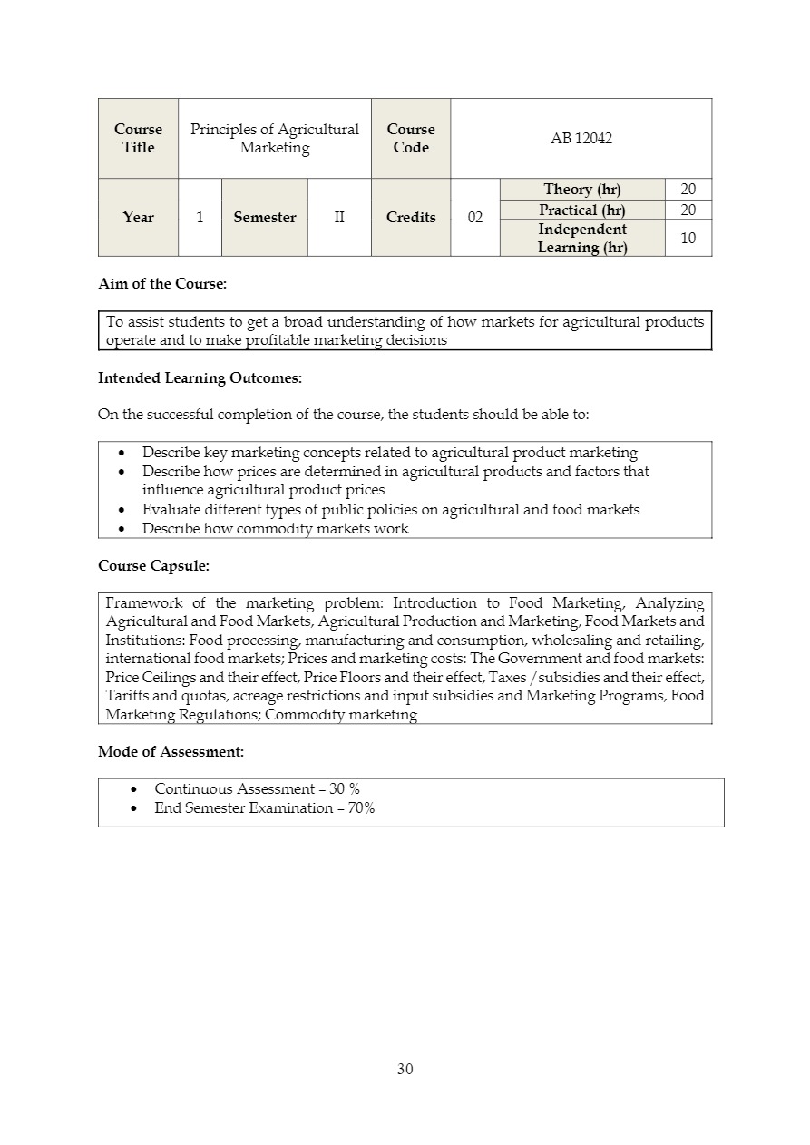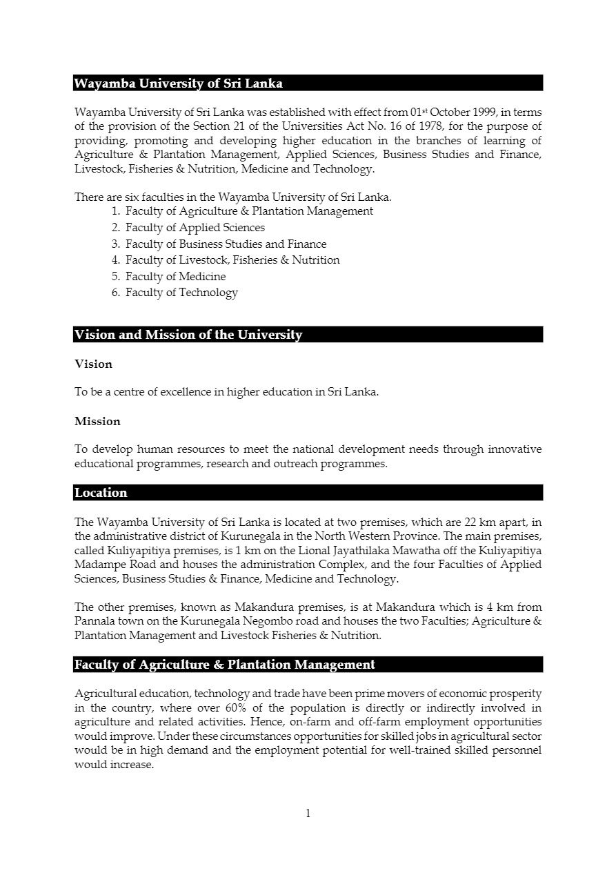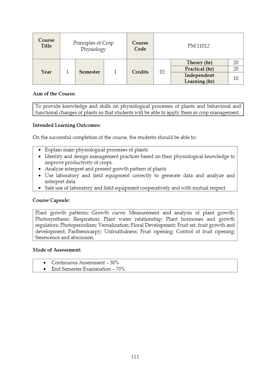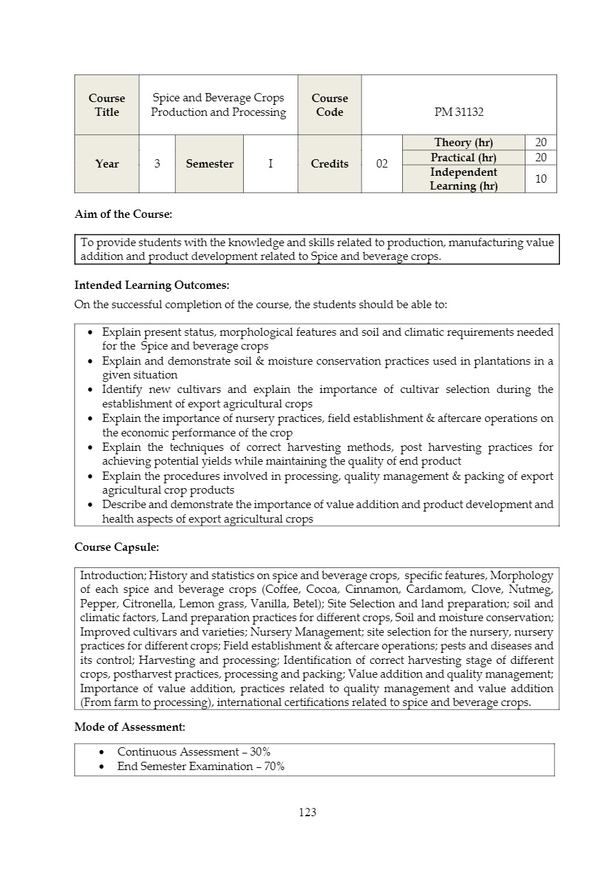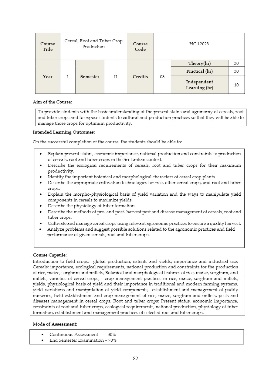 Faculty of Agriculture & Plantation Management –B.Sc. Agriculture: Student Handbook