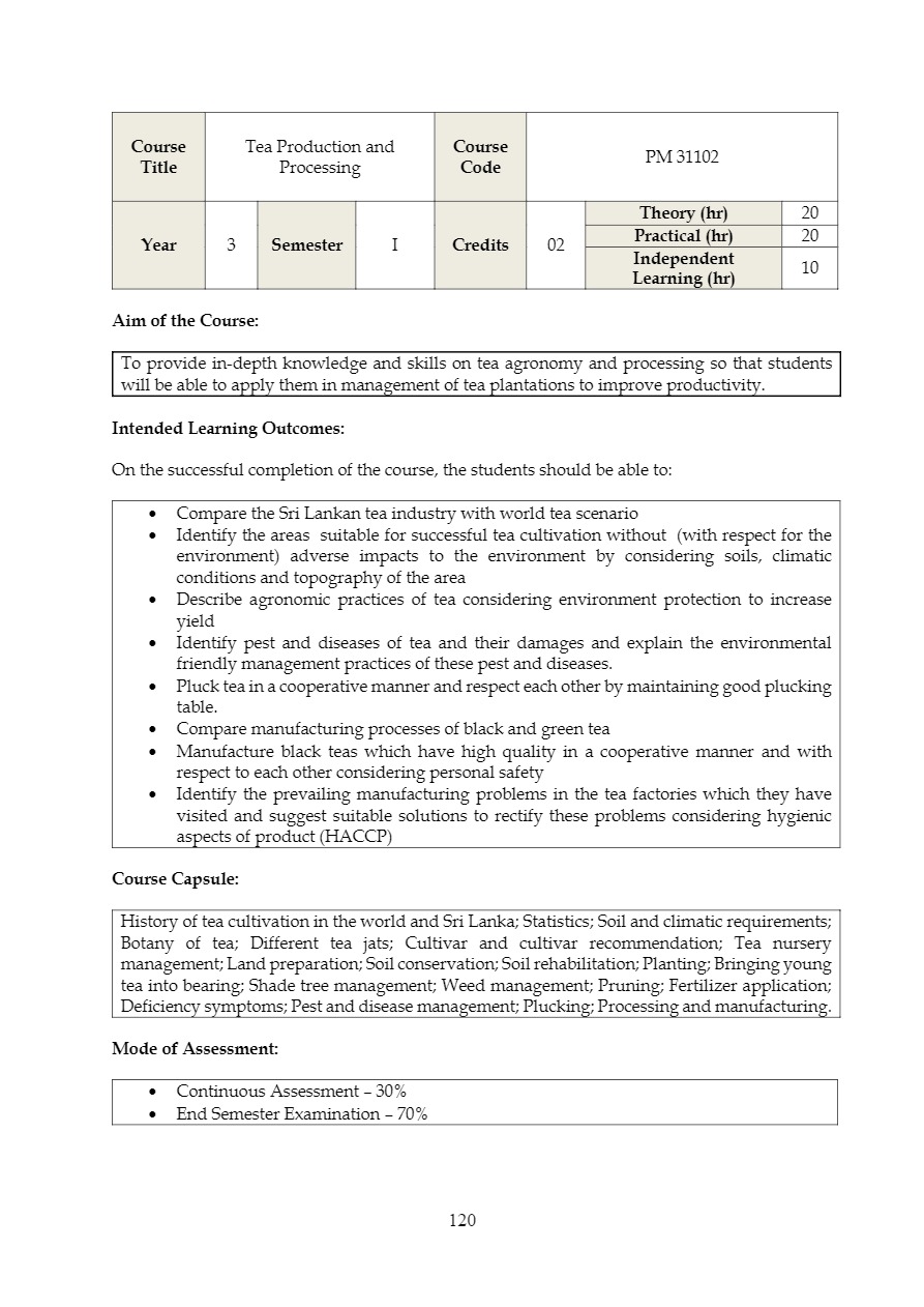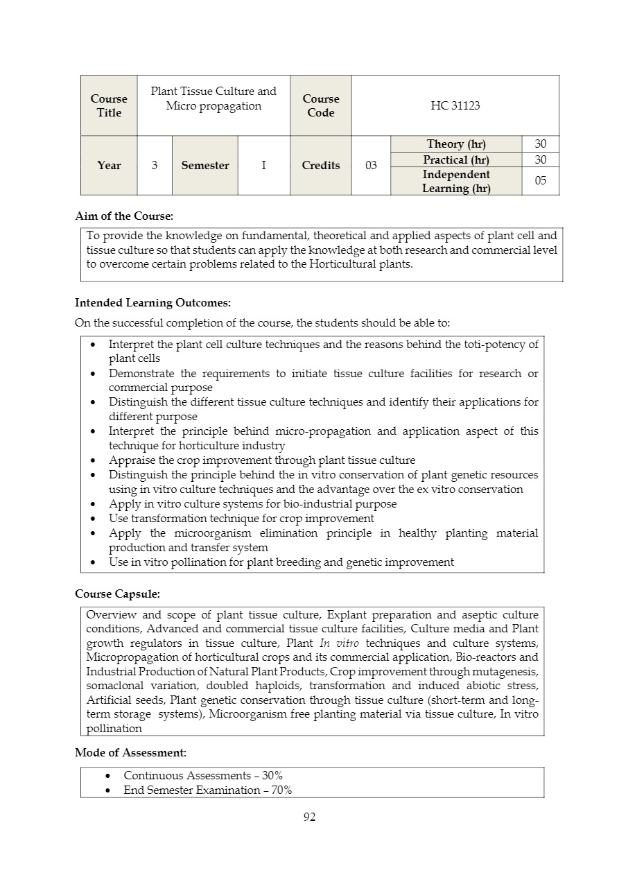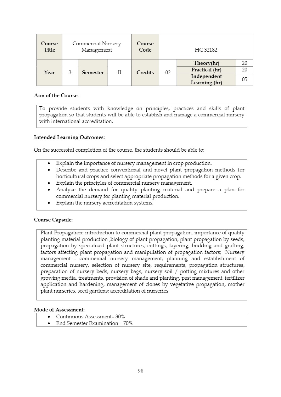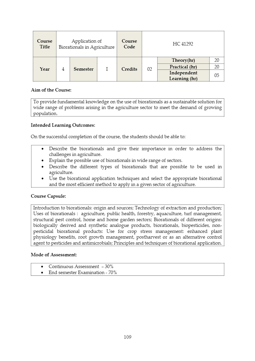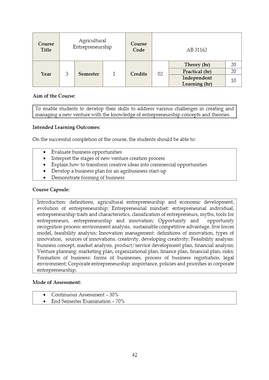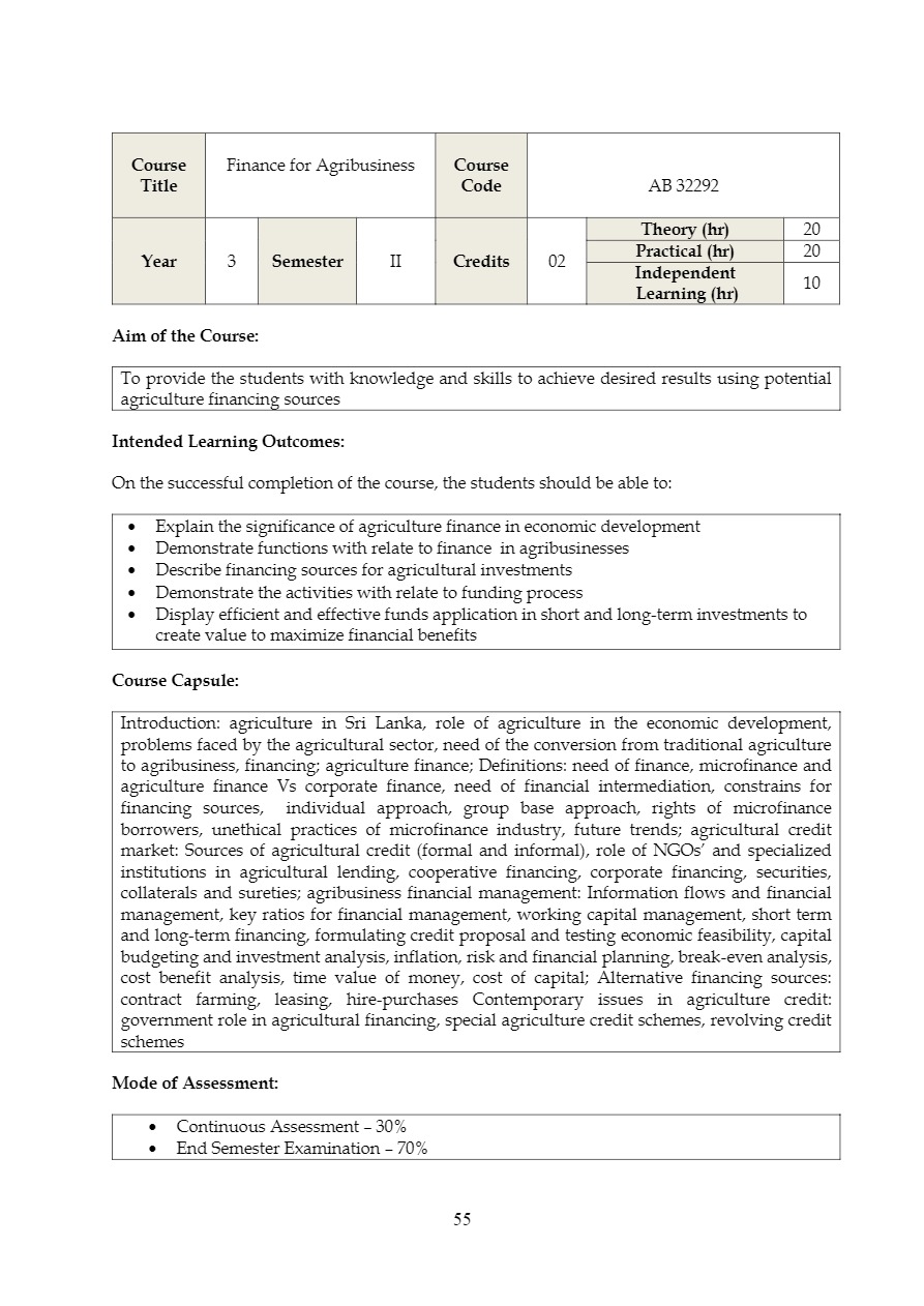 Faculty of Agriculture & Plantation Management –B.Sc. Agriculture: Student Handbook