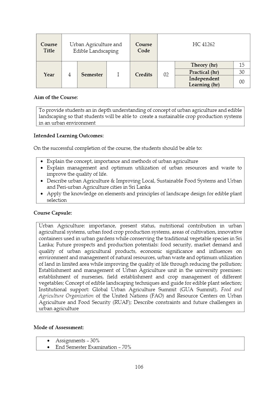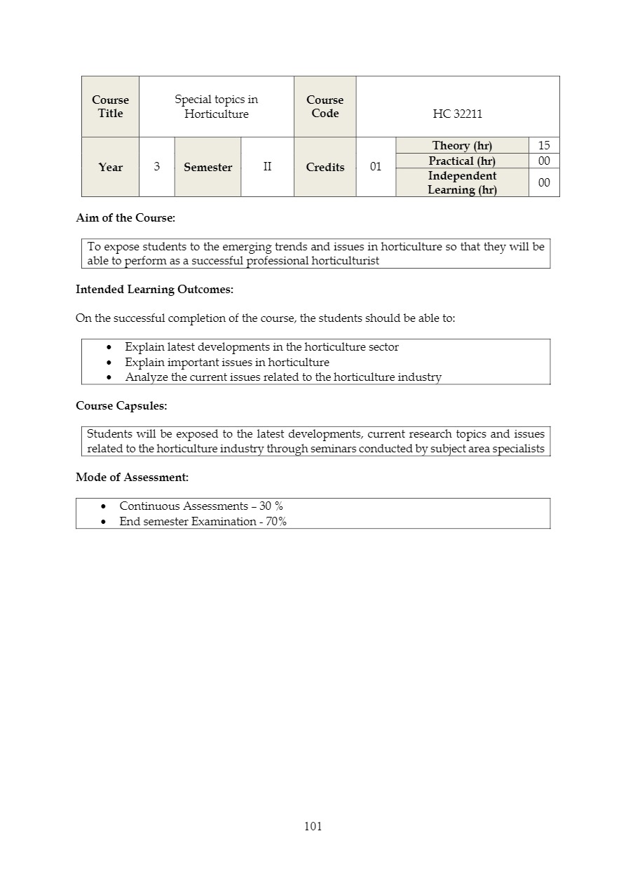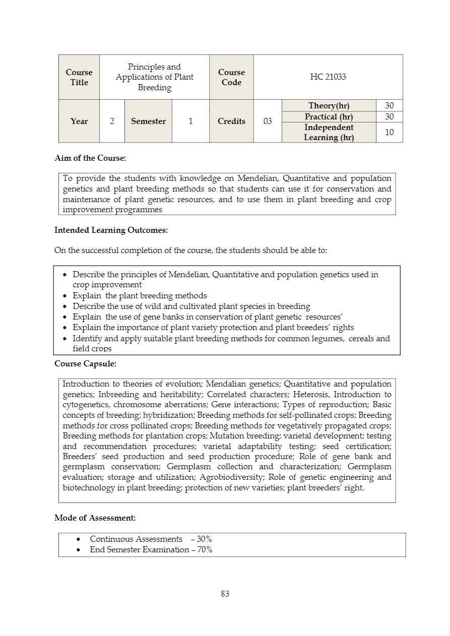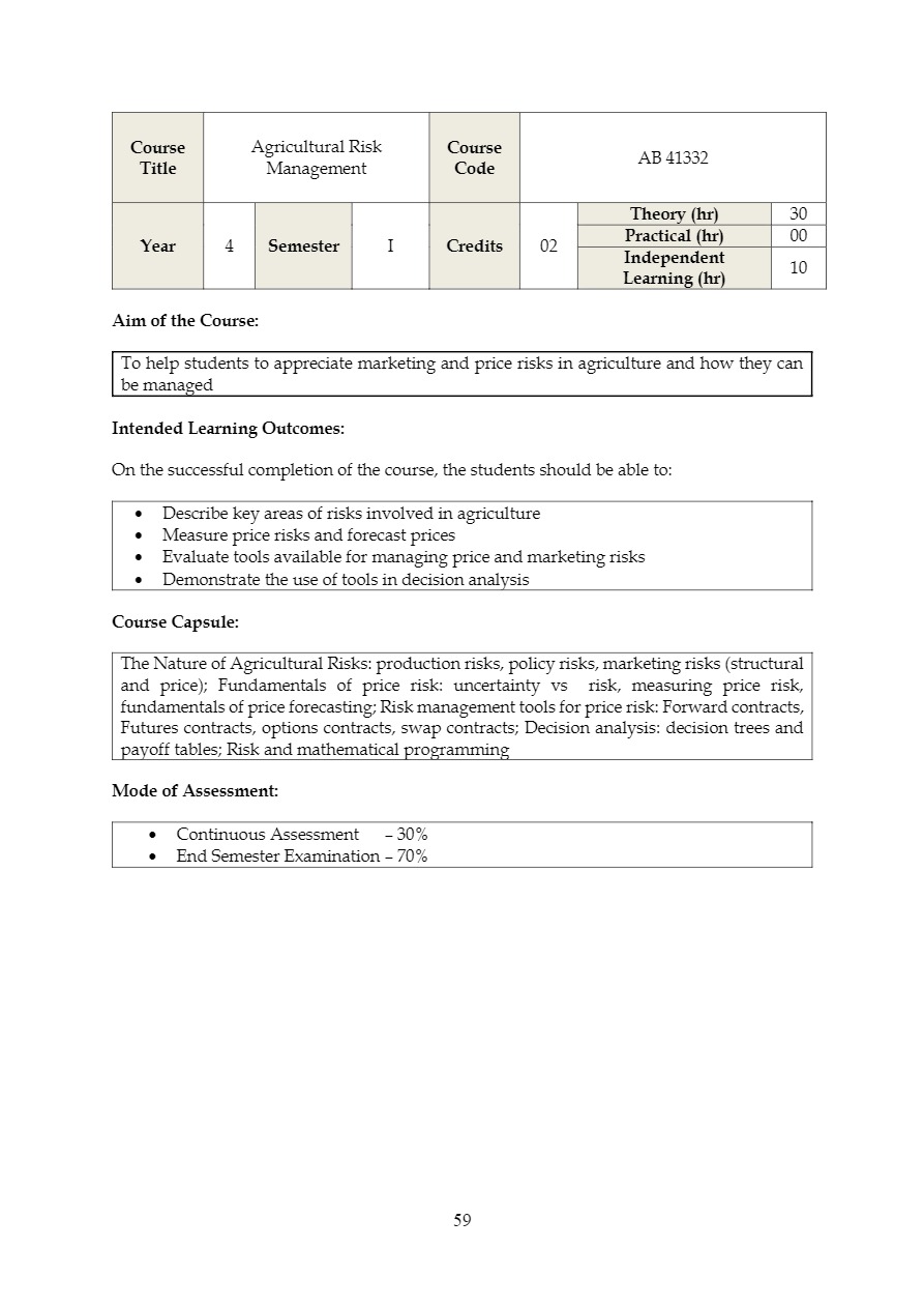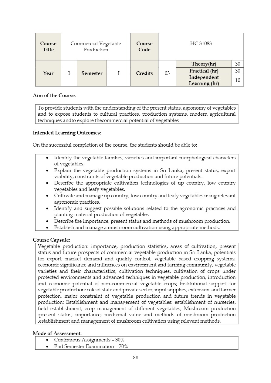 Faculty of Agriculture & Plantation Management –B.Sc. Agriculture: Student Handbook