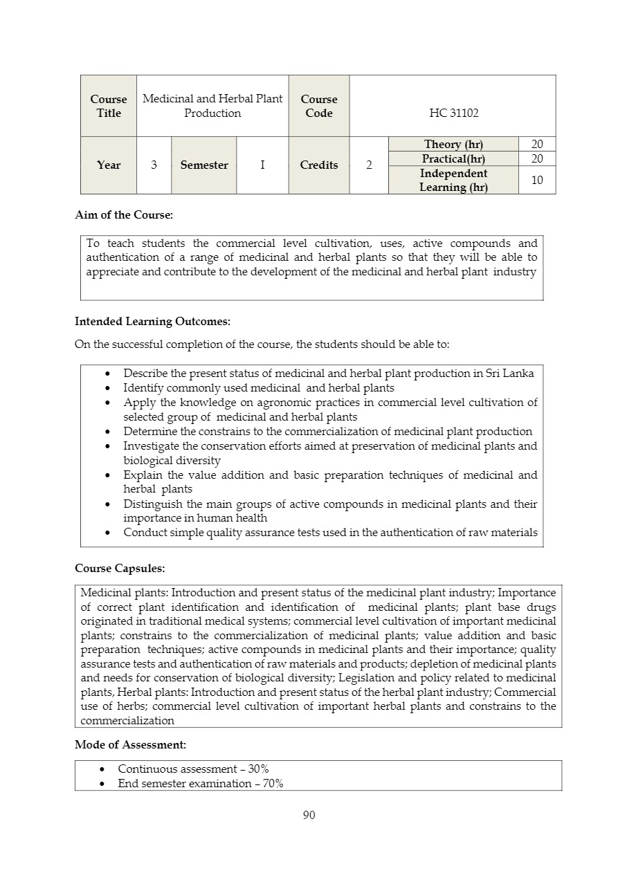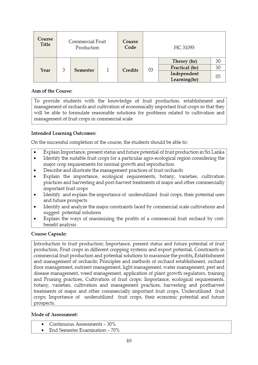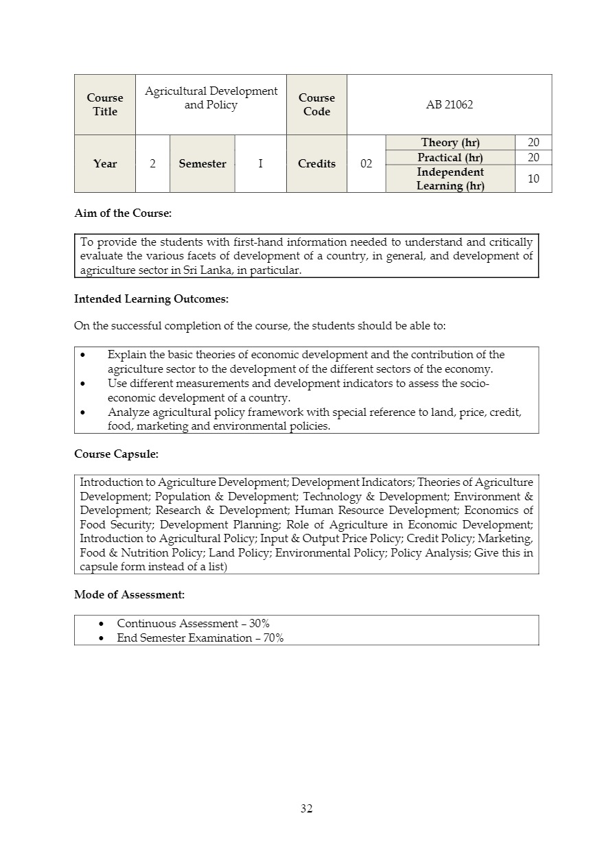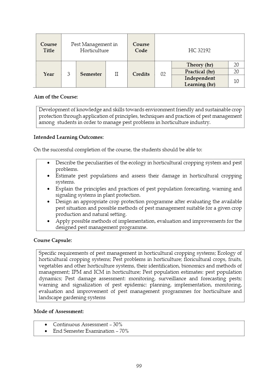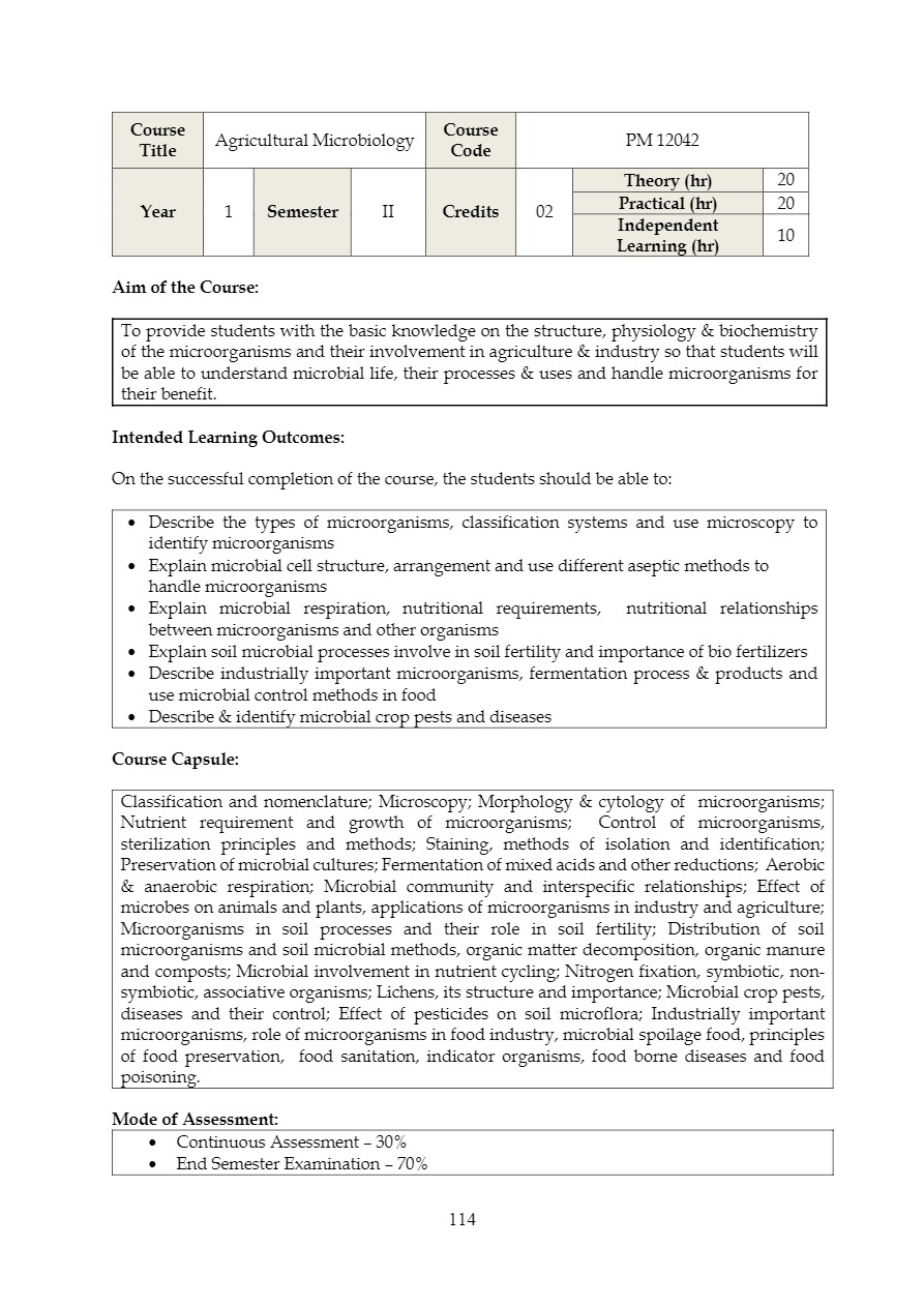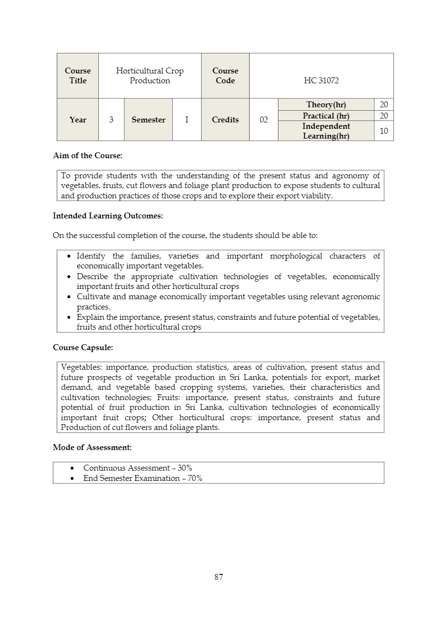 Faculty of Agriculture & Plantation Management –B.Sc. Agriculture: Student Handbook