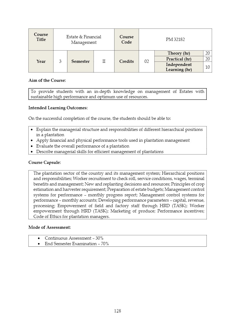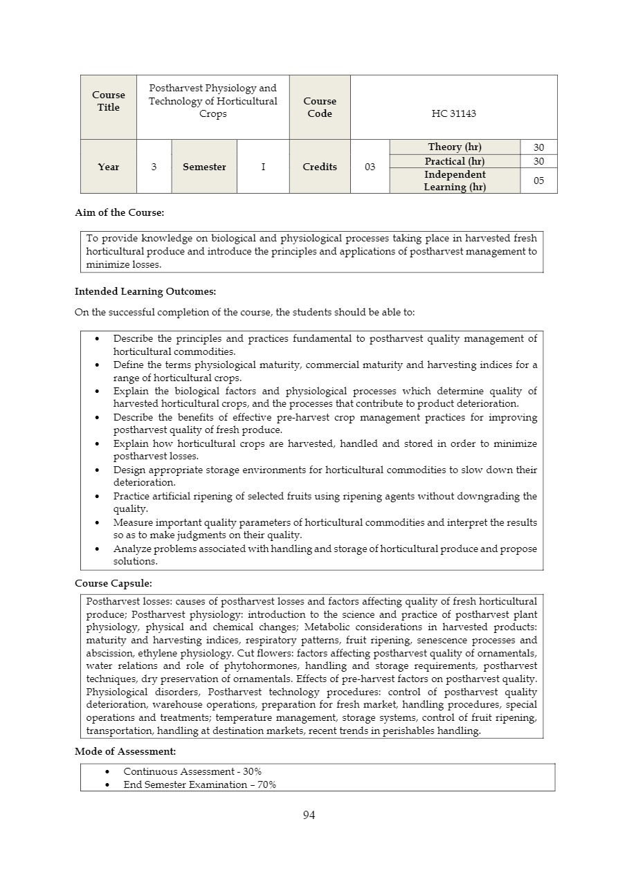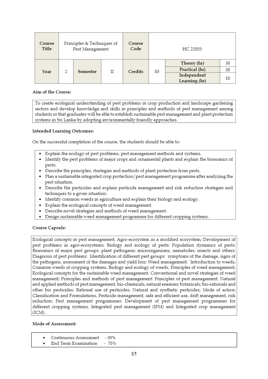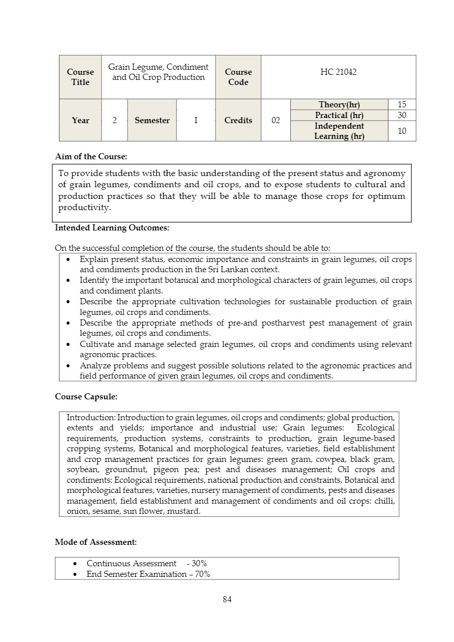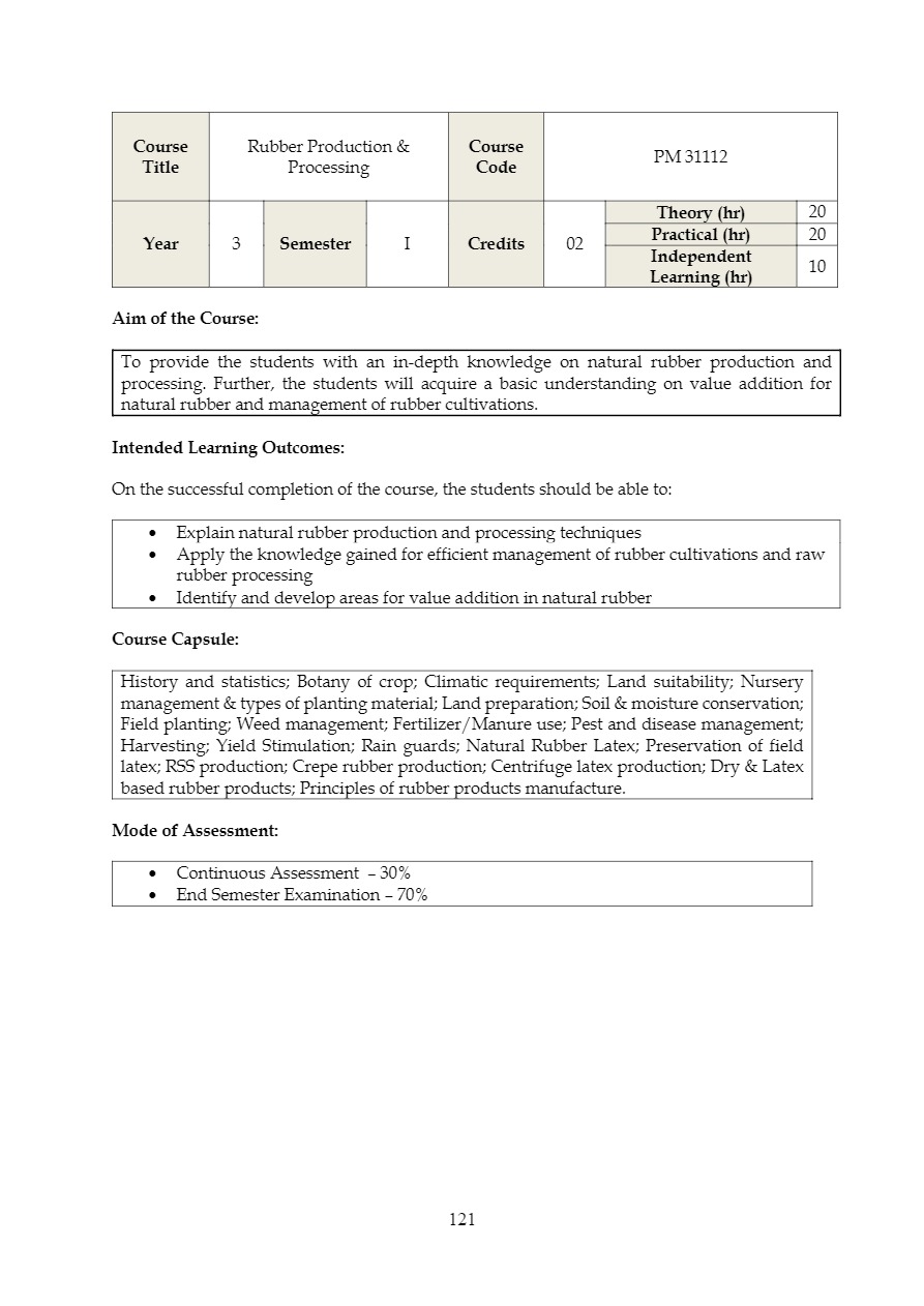 Faculty of Agriculture & Plantation Management –B.Sc. Agriculture: Student Handbook