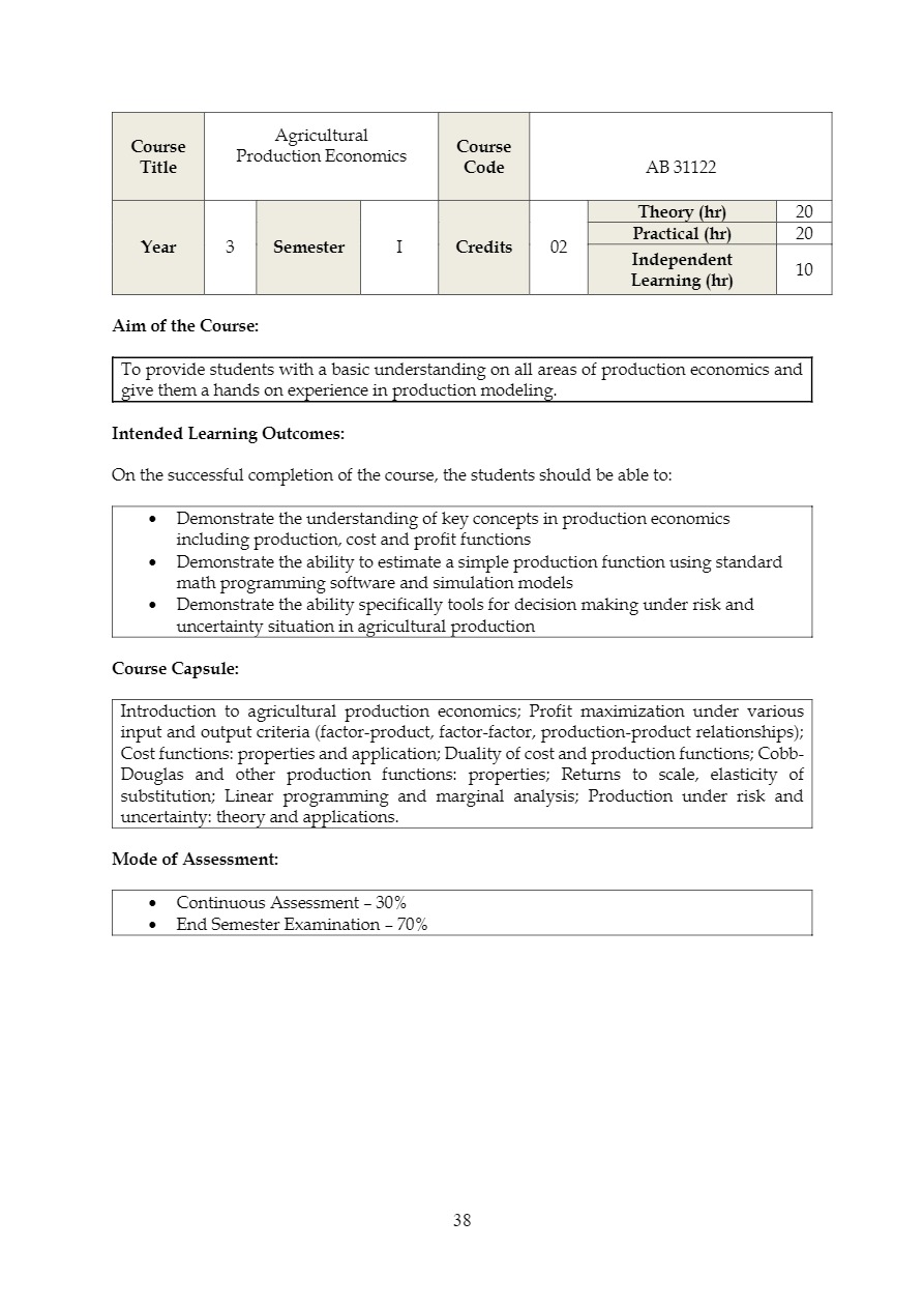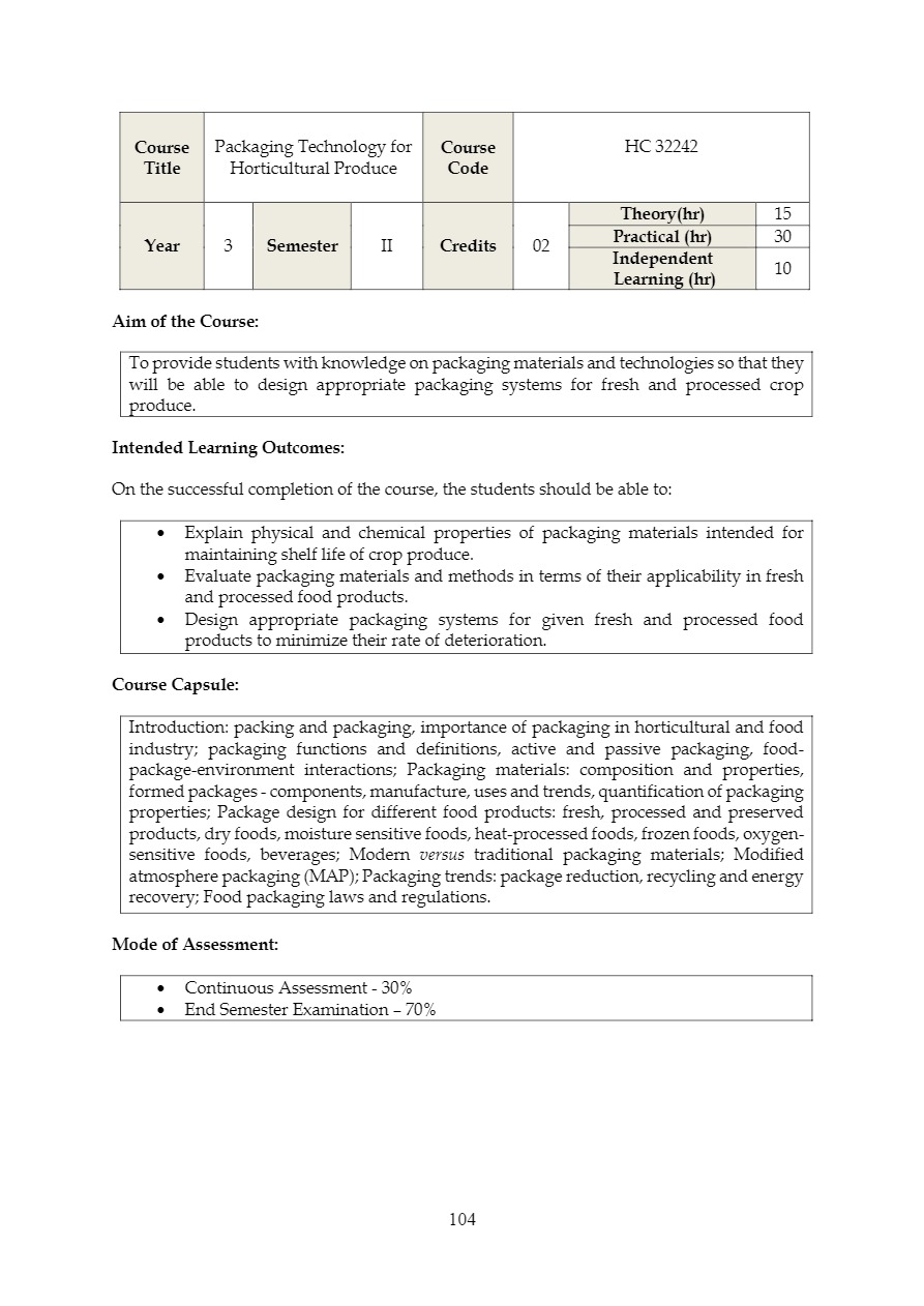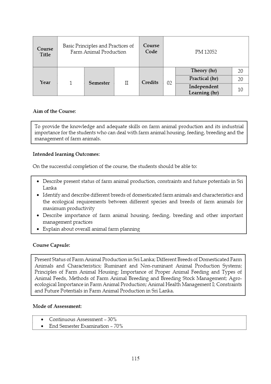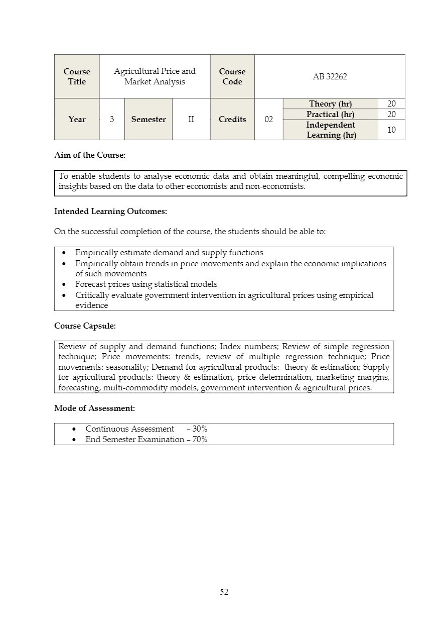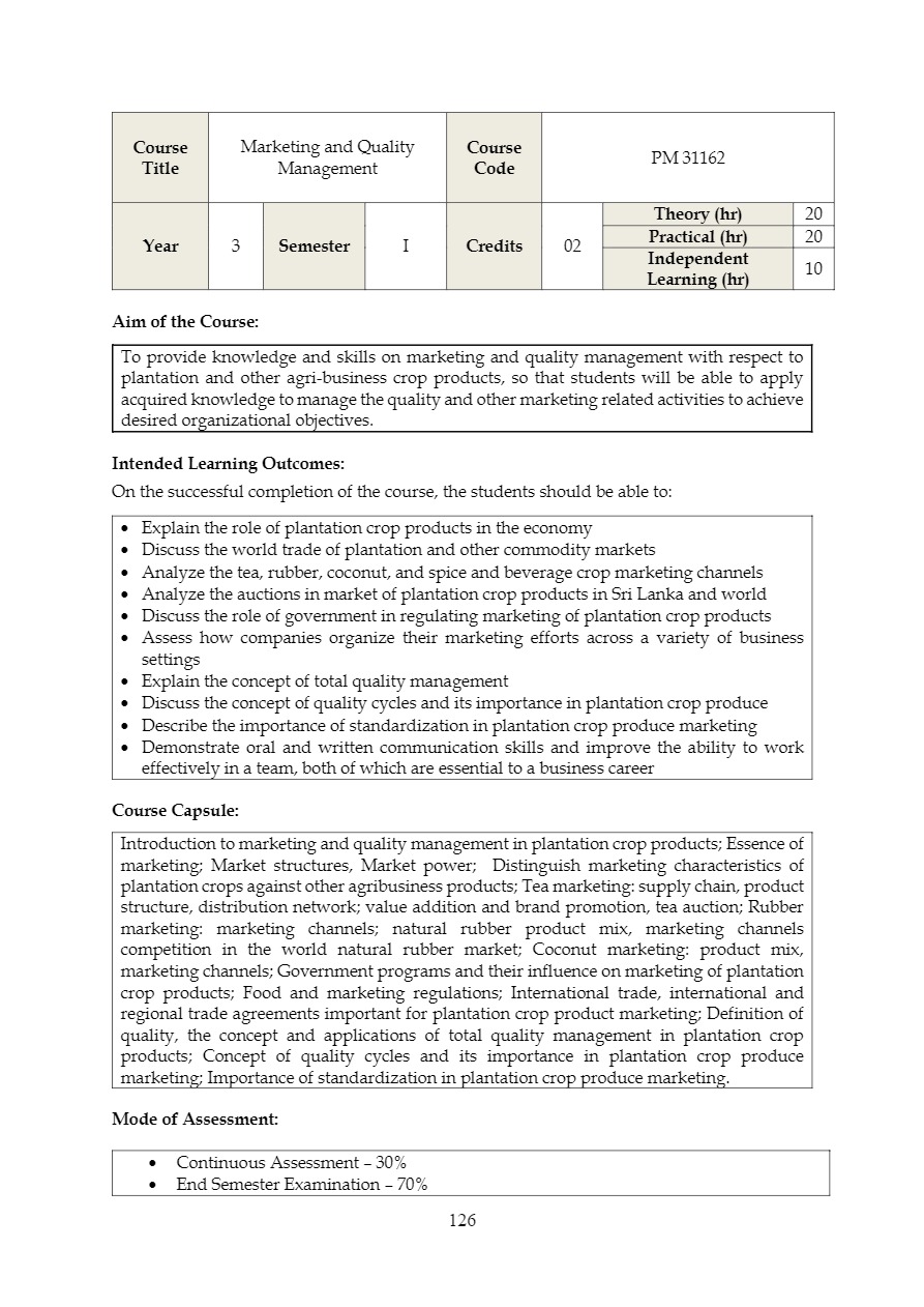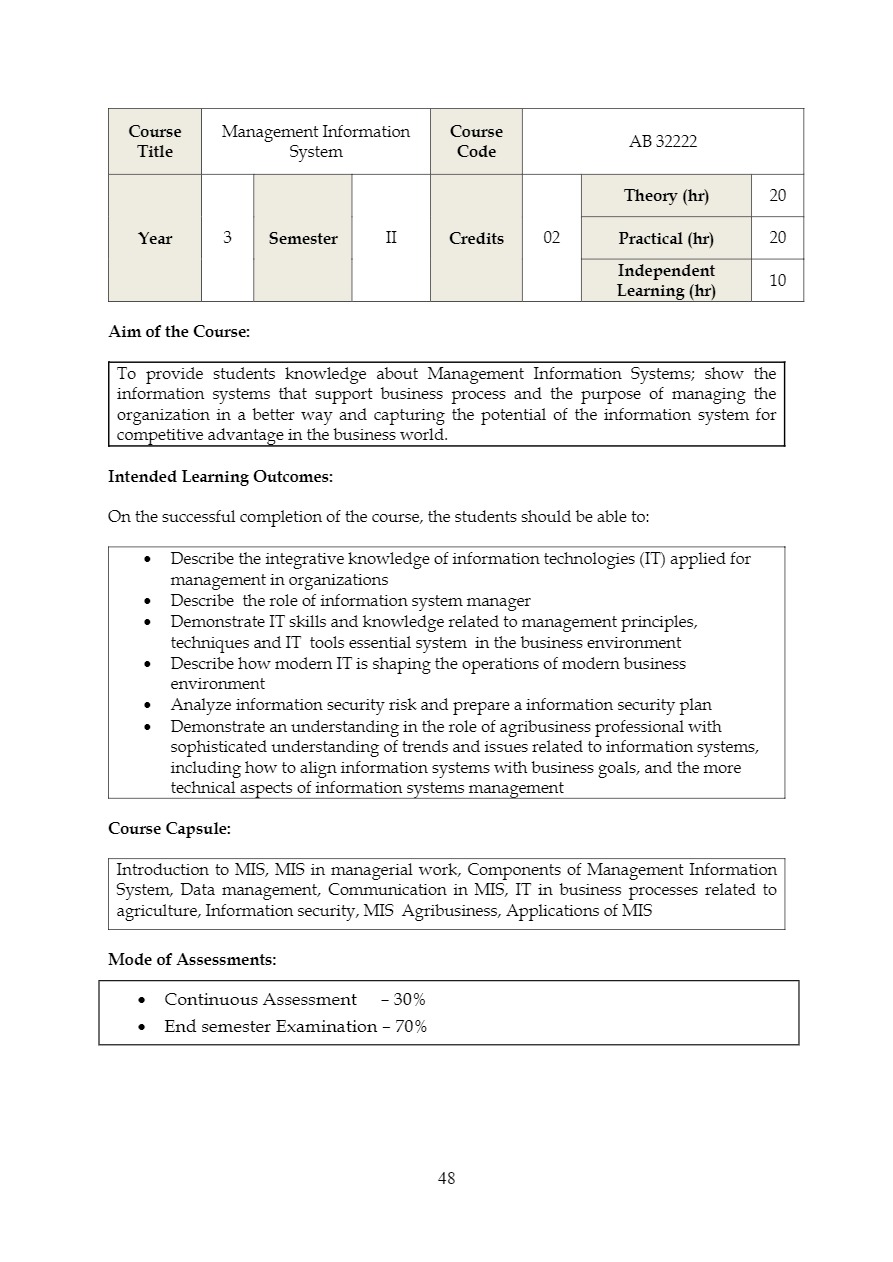 Faculty of Agriculture & Plantation Management –B.Sc. Agriculture: Student Handbook