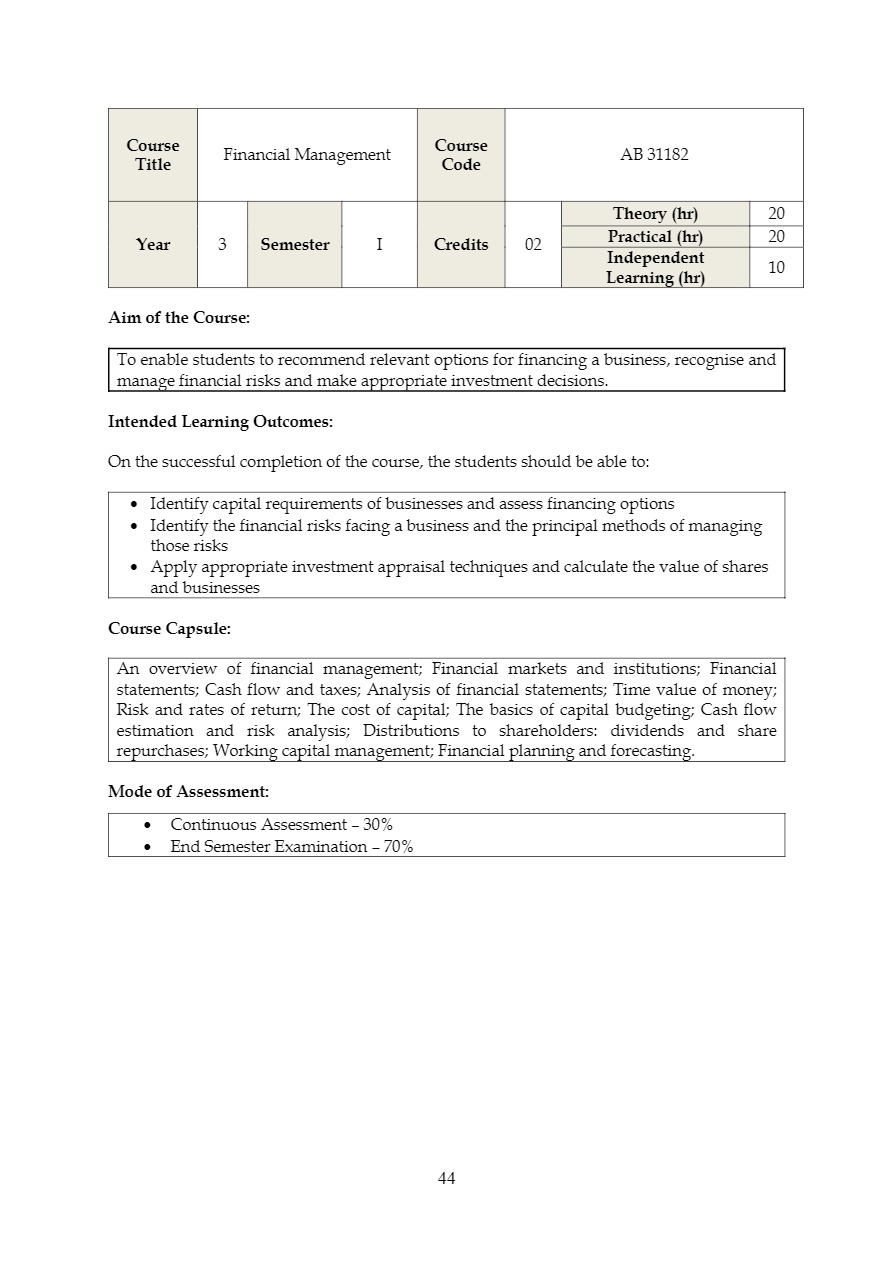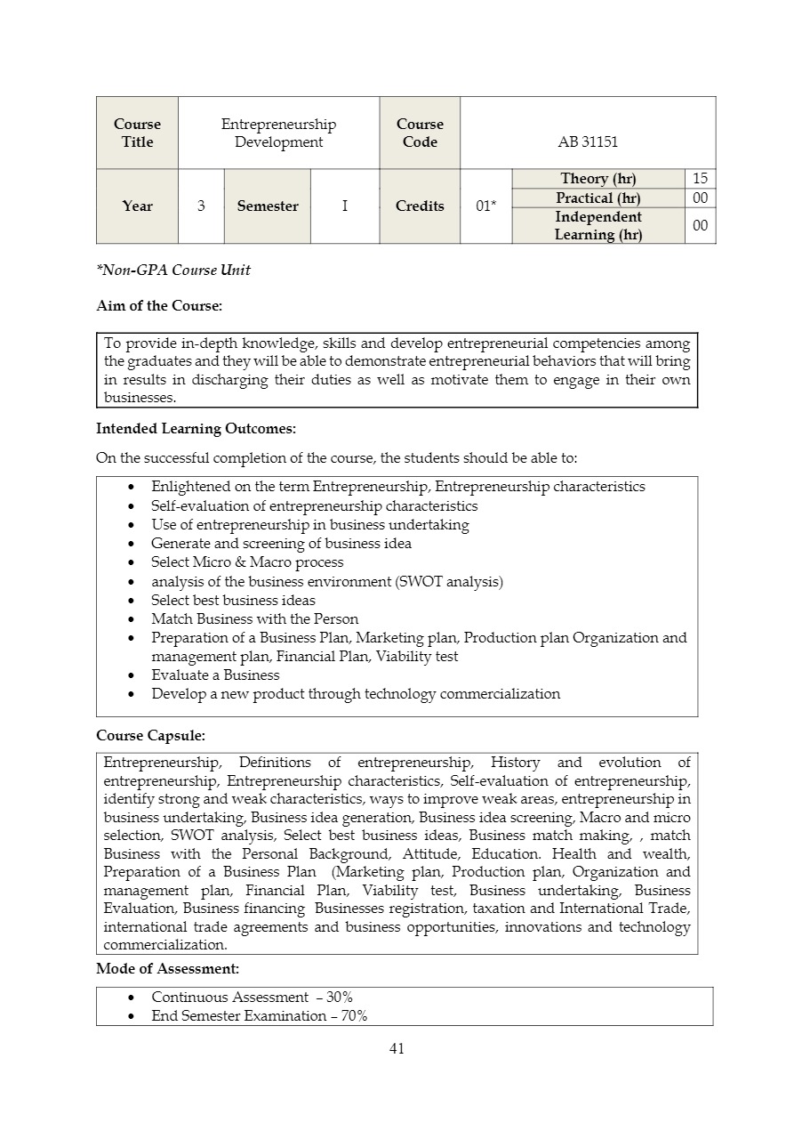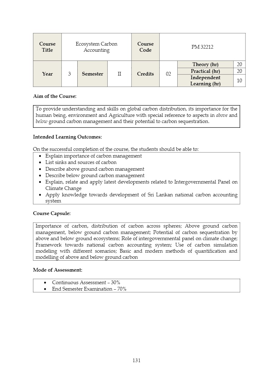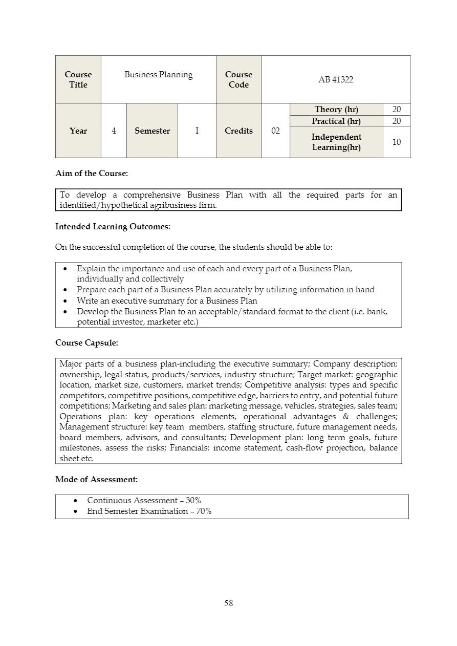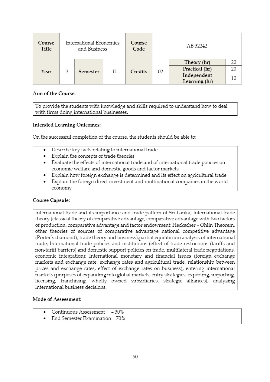 Faculty of Agriculture & Plantation Management –B.Sc. Agriculture: Student Handbook