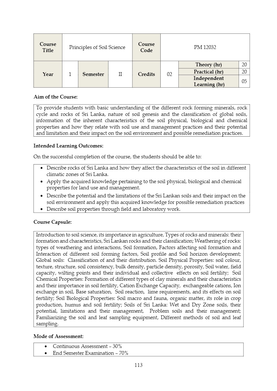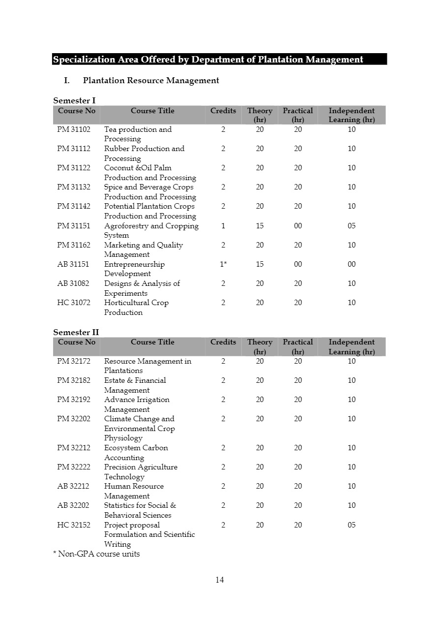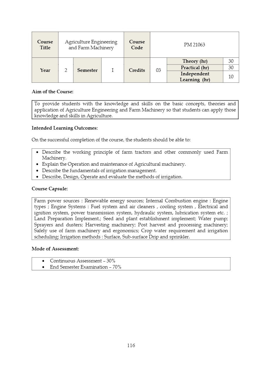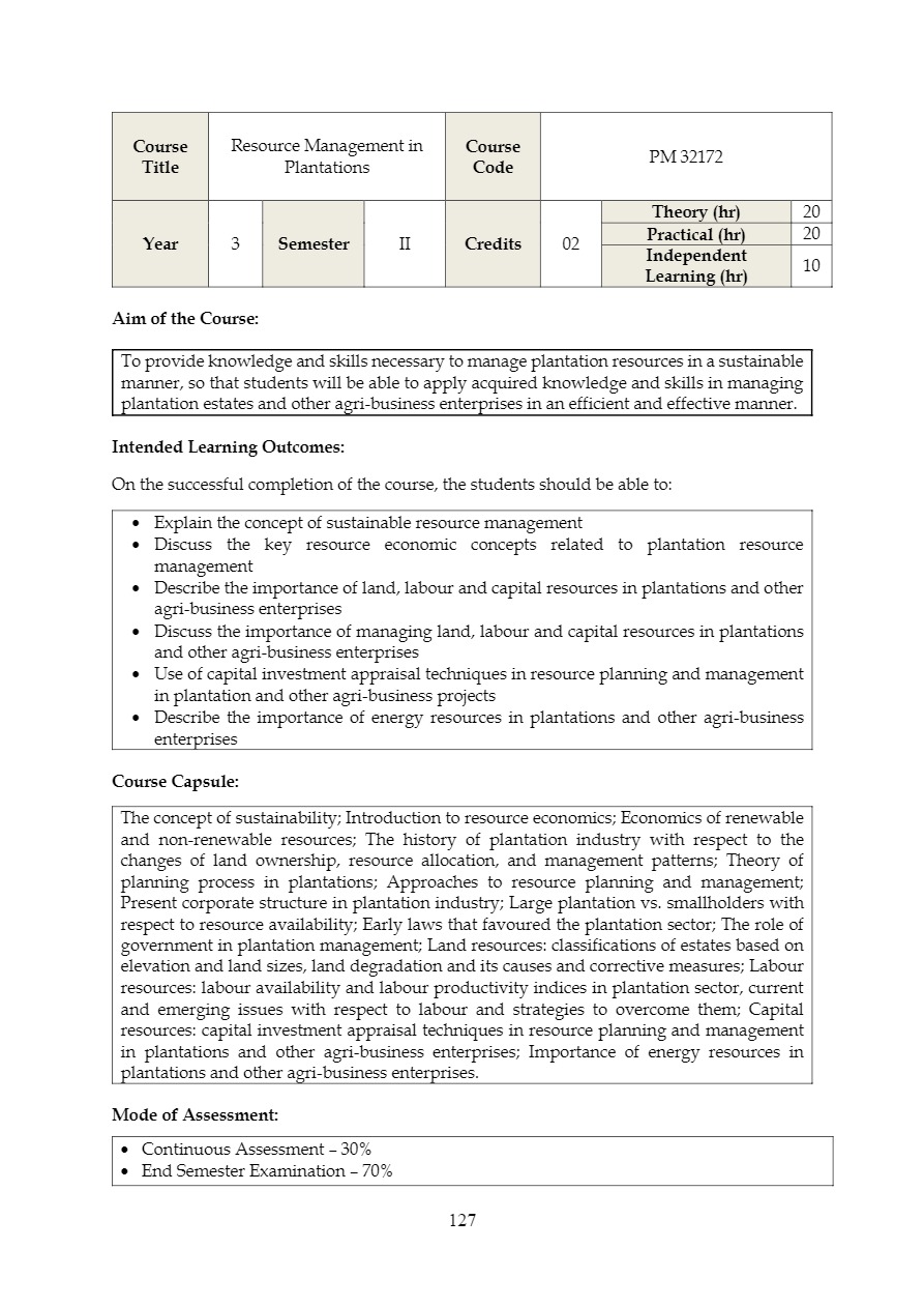 Faculty of Agriculture & Plantation Management – B.Sc. Agriculture