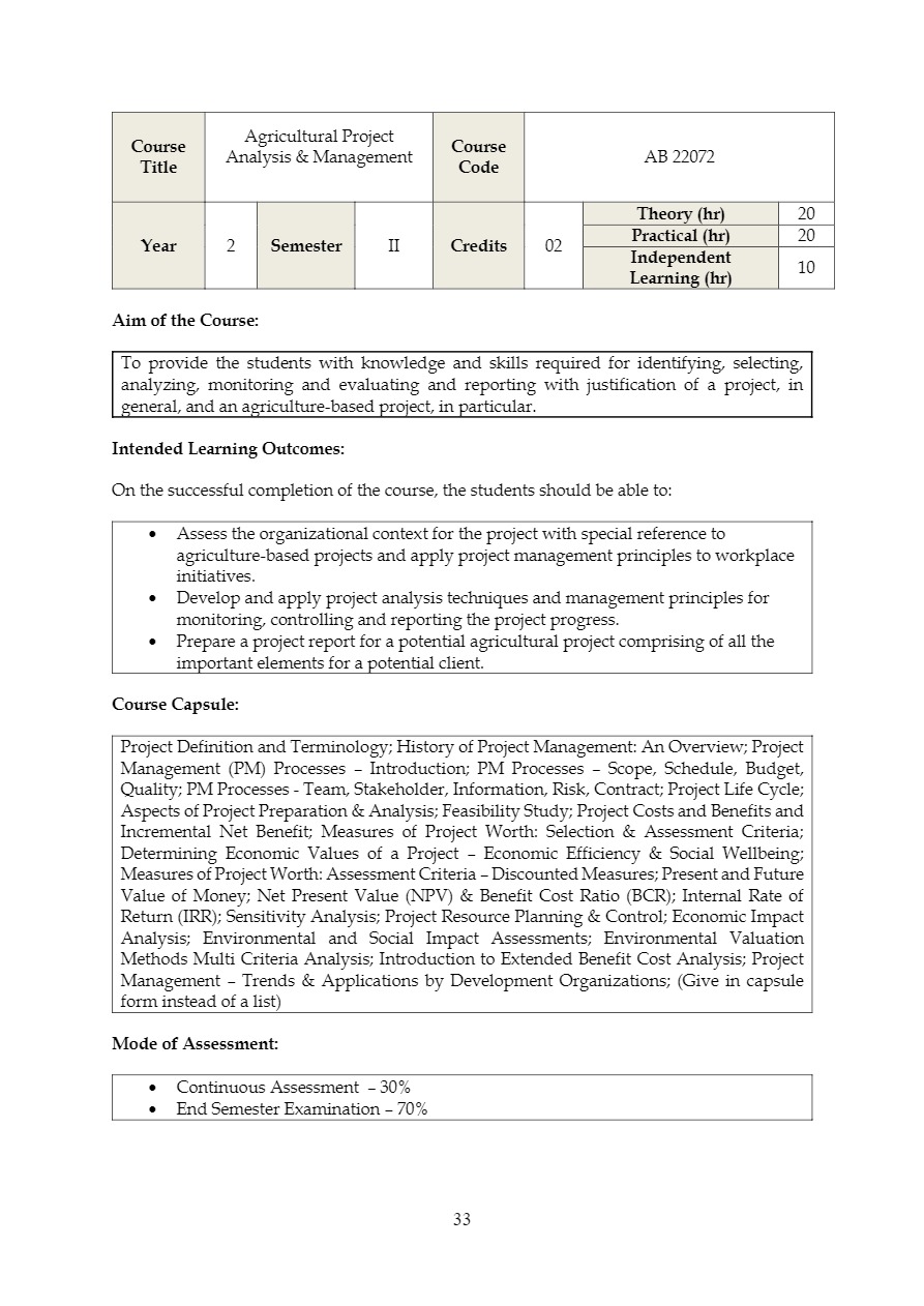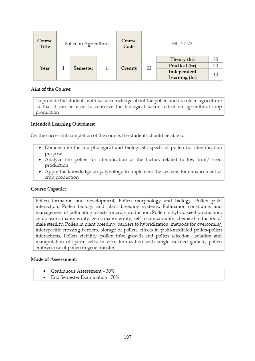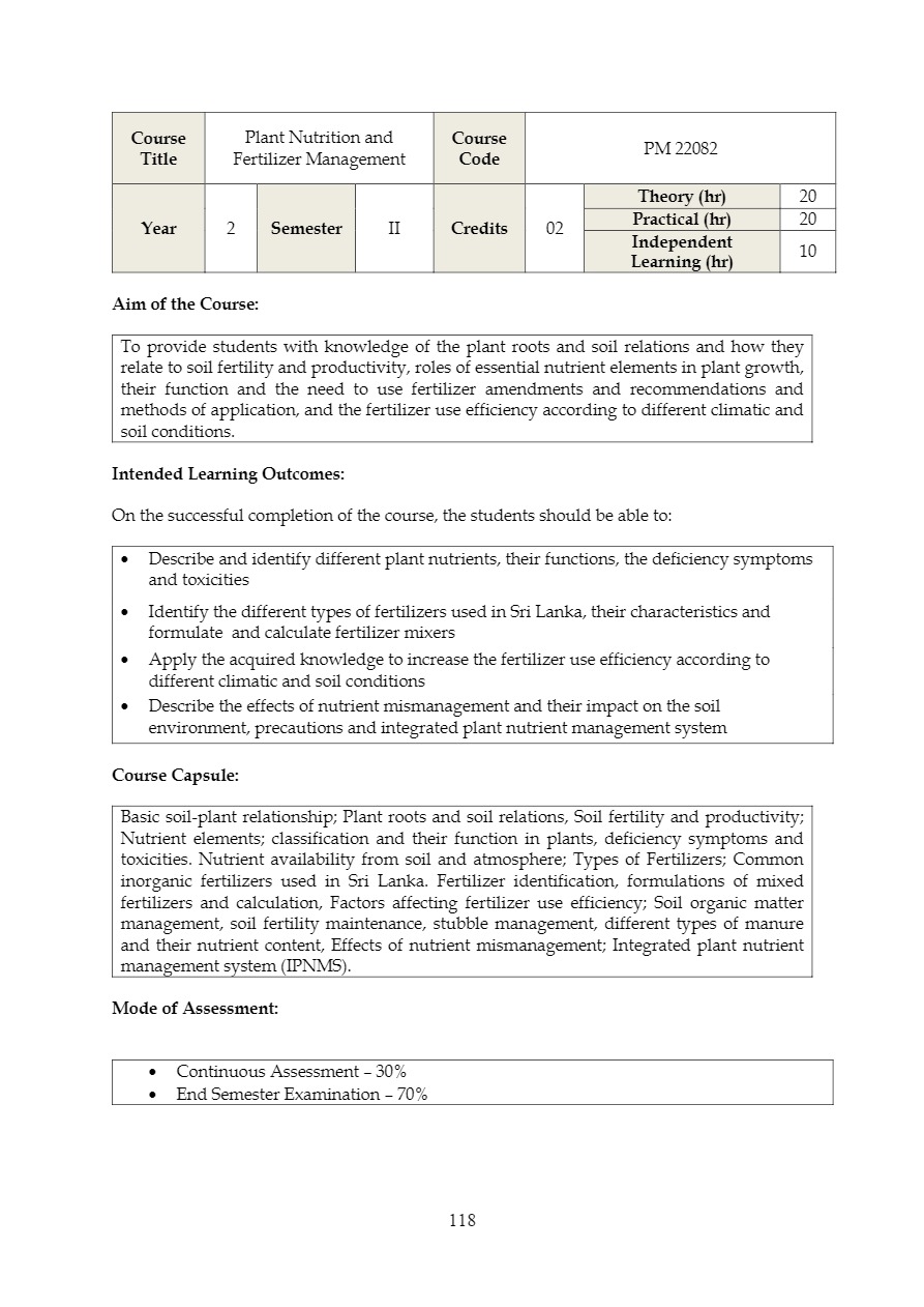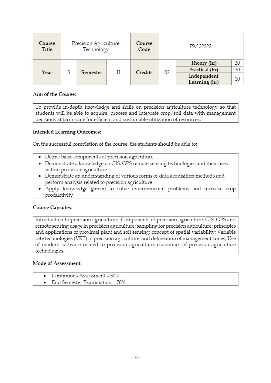 Faculty of Agriculture & Plantation Management – B.Sc. Agriculture