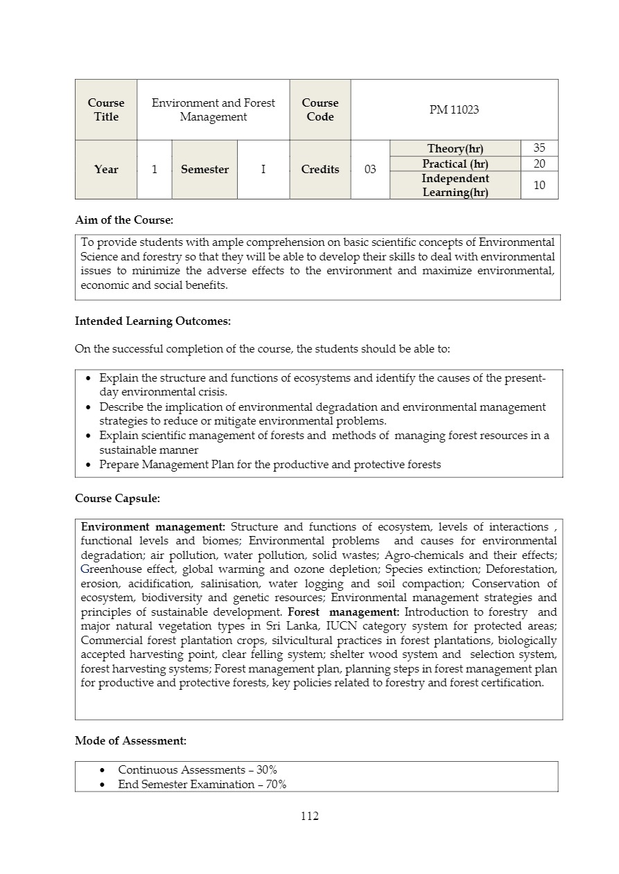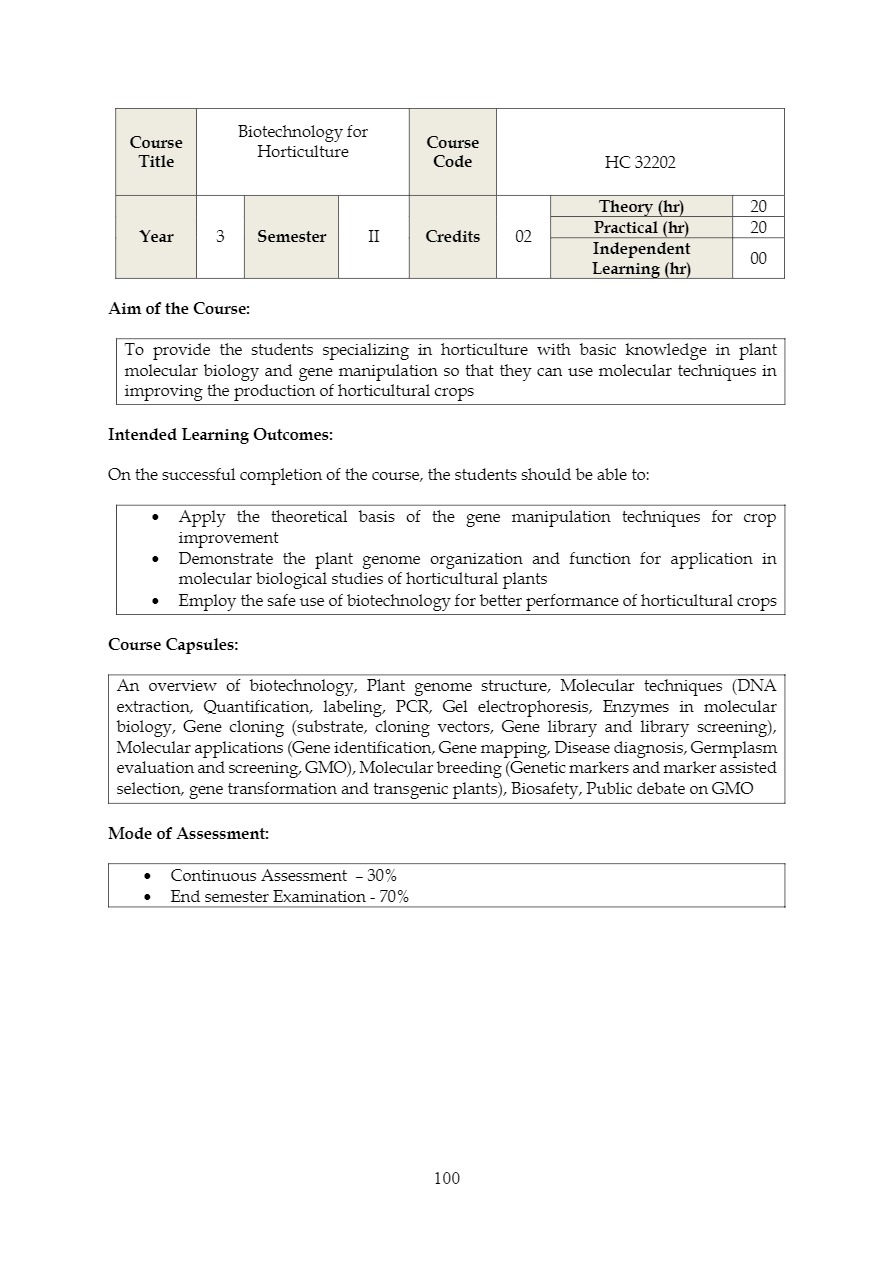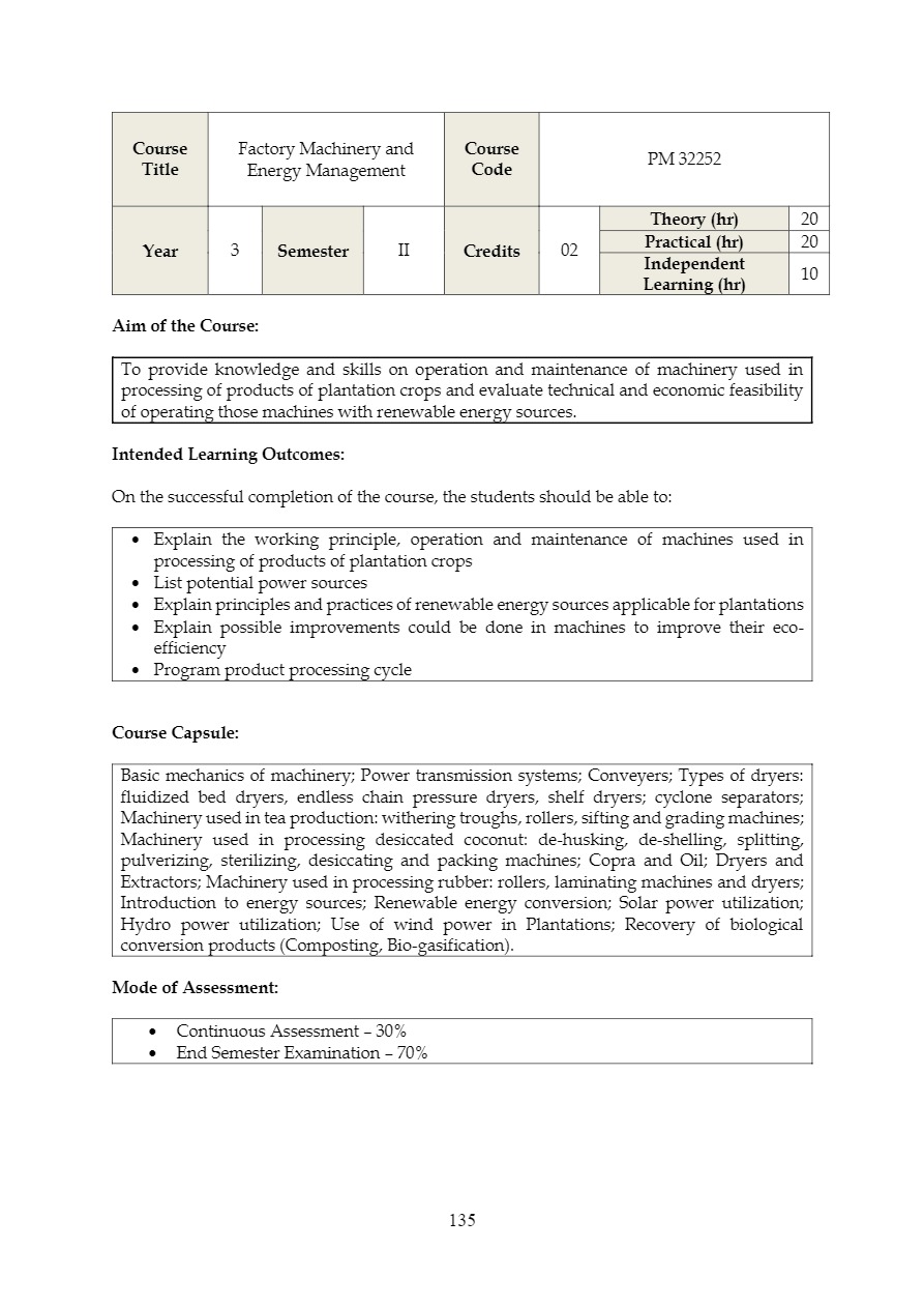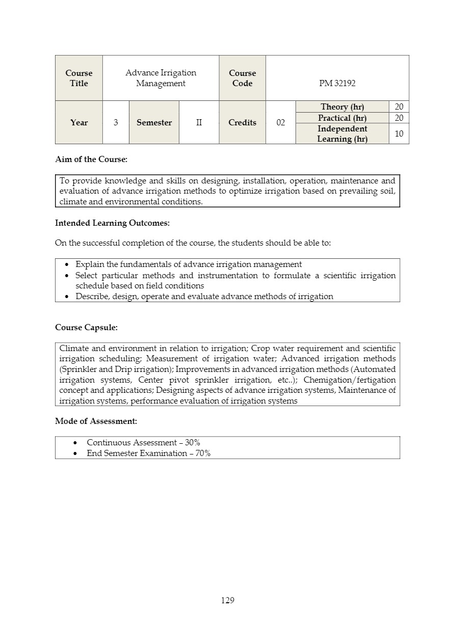 Faculty of Agriculture & Plantation Management – B.Sc. Agriculture
