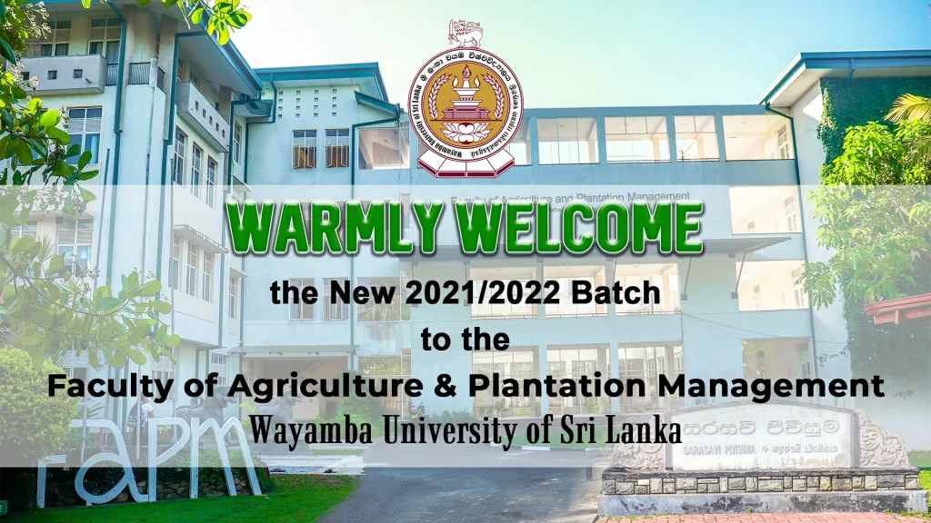 Faculty of Agriculture and Plantation Management welcomes the new student batch 2021/2022 for the degree courses B.Sc. Agriculture (Hons) and B. Biosystems Technology (Hons) in Wayamba University of Sri Lanka. Congratulations to all newly registered students and wish you all the best!