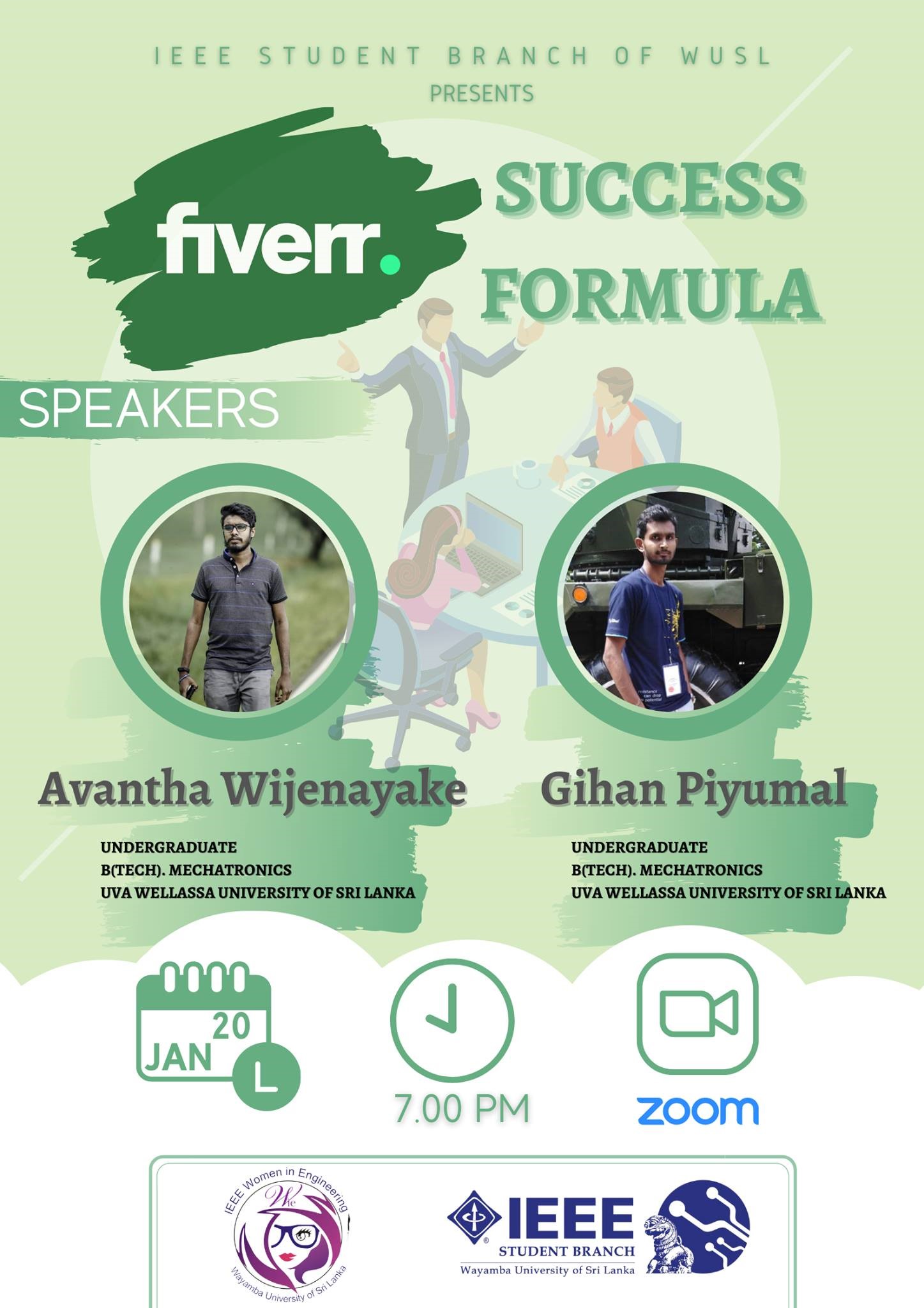 The IEEE Wayamba University of Sri Lanka Student Branch held the an online webinar about Fiverr on the 20th of January 2021 from 7.00 pm onwards via zoom. With 150+ attendees, a two hour program was conducted for everyone who are looking for an extra income and who are interested in getting know more about Fiverr.