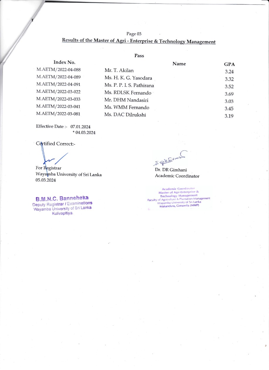 The duration of the proposed ‘Master of Agri-Enterprise & Technology Management’ degree [M.(AETM)] program is one Academic Year. The ‘Academic Year’ consists of 02 Semesters of 15 weeks each and academic program is based on ‘Course Credit System’, where the students will be assessed continuously throughout the semester (i.e. formative) and end-semester evaluation (i.e. summative) will be held at the end of teaching of each course. The students will be informed about the type and schedule of continuous assessment at the beginning of each course unit.