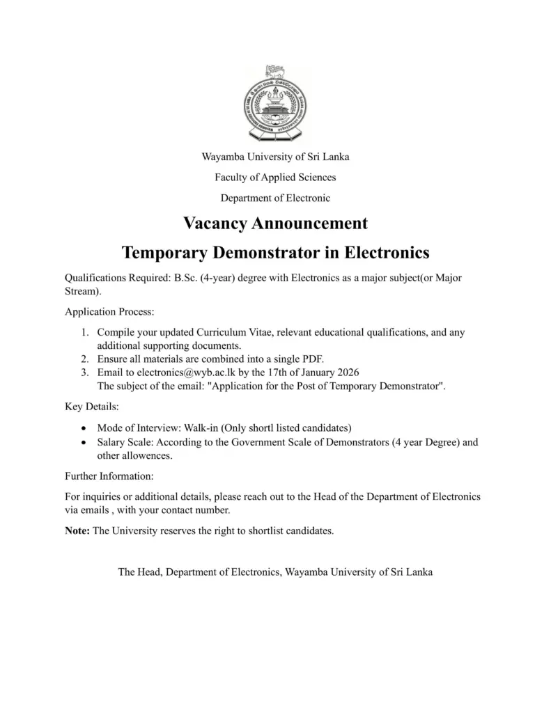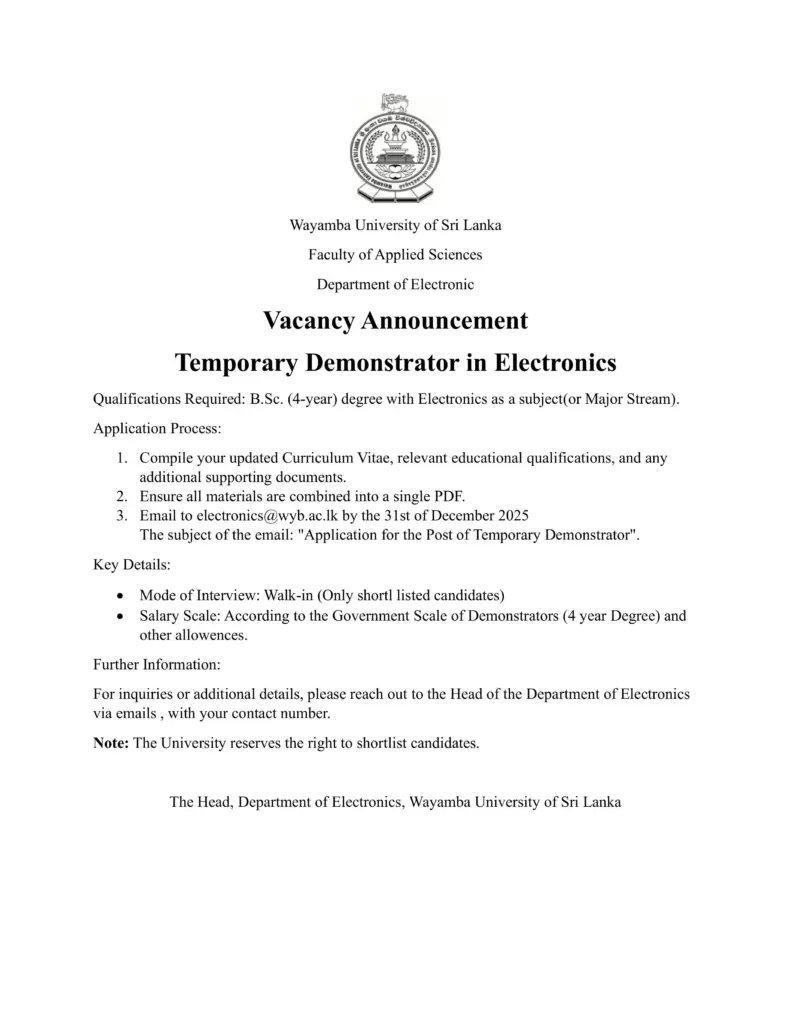 Extended Notice for the Post of Academic Warden (Makandura & Labuyaya)