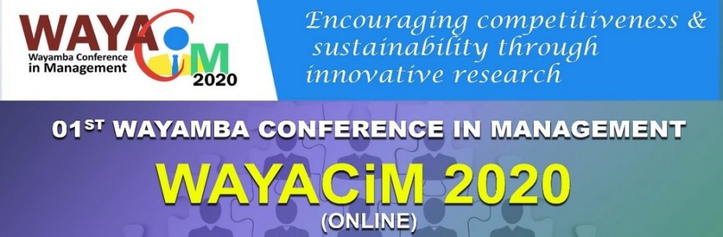 The very first Virtual Research Conference, organized by the Department of Business Management, Faculty of Business Studies & Finance, Wayamba University of Sri Lanka, Wayamba Conference in Management (WAYACiM – 2020) was conducted successfully on 25th of September 2020, under the theme ‘Encouraging Competitiveness and Sustainability through Innovative Research’. The Department of Business Management envisioned being the ‘Best and the most preferred academic department in the field of business management’, and committed to pursue excellence in conducting management researches and community services in the region while making every effort to contribute to the University vision. WAYACiM 2020 was expected to envisage ground for seeding a comprehensive, research, and innovation-led sustainable growth agenda in the field of business by providing an opportunity for the undergraduates to refine their research skills, specifically in the field of management to expand the frontiers of their future potential.